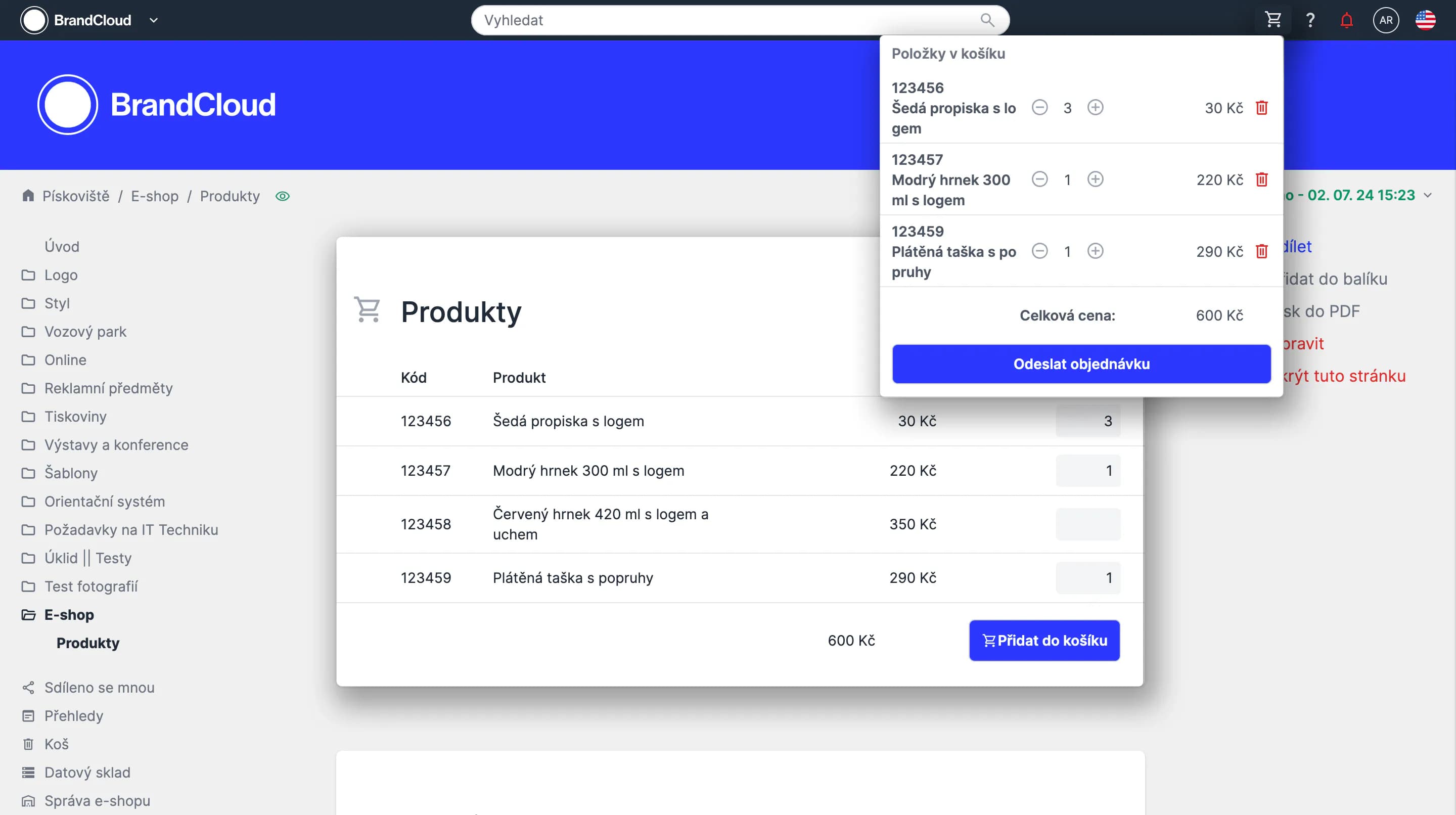 Po přidání produktů do košíku můžeš v pop-up okně spravovat a upravovat jejich množství.
