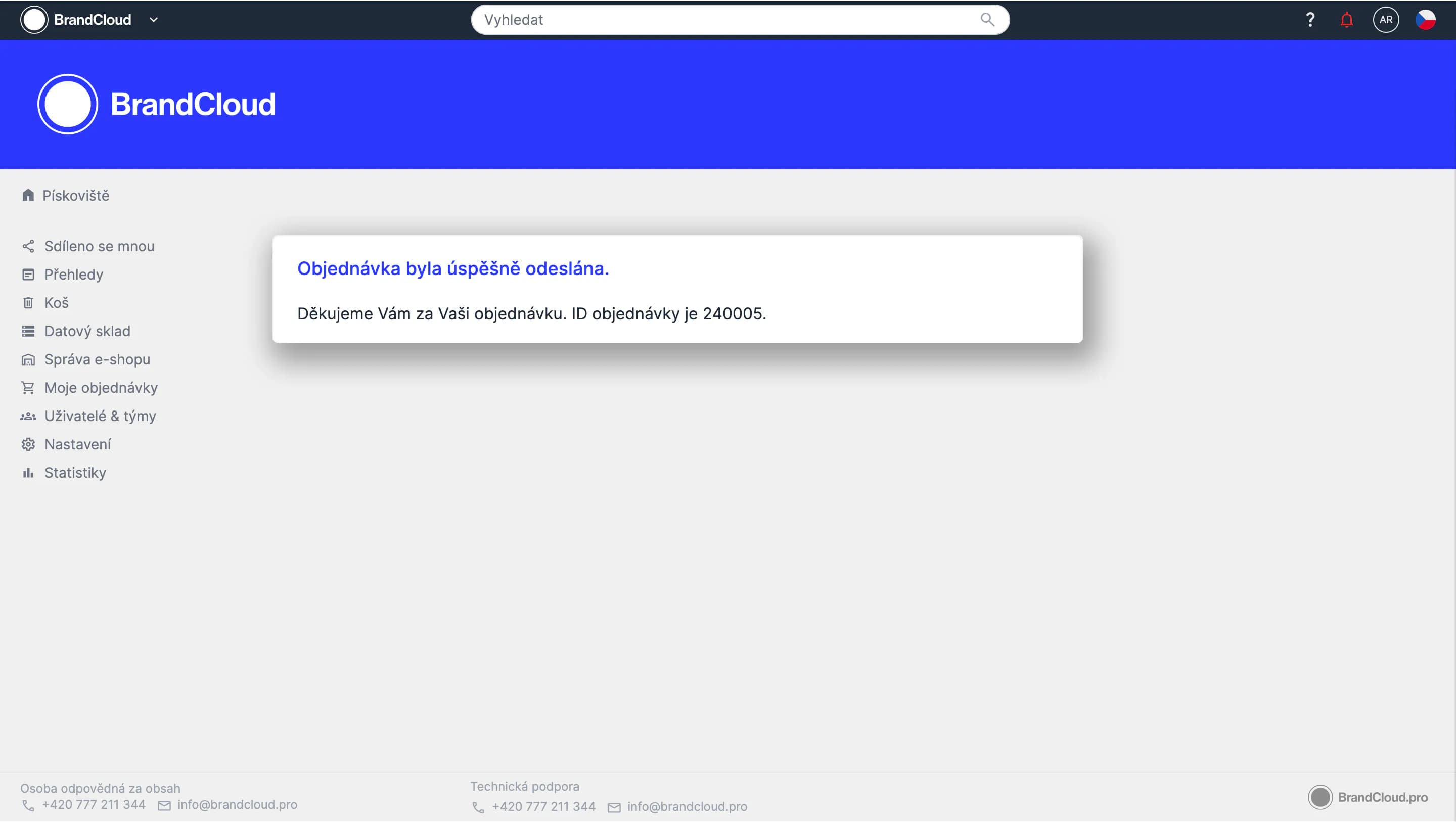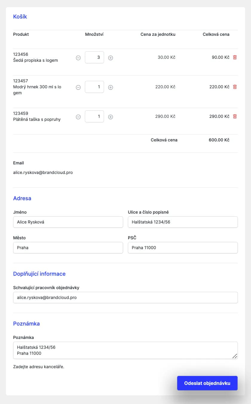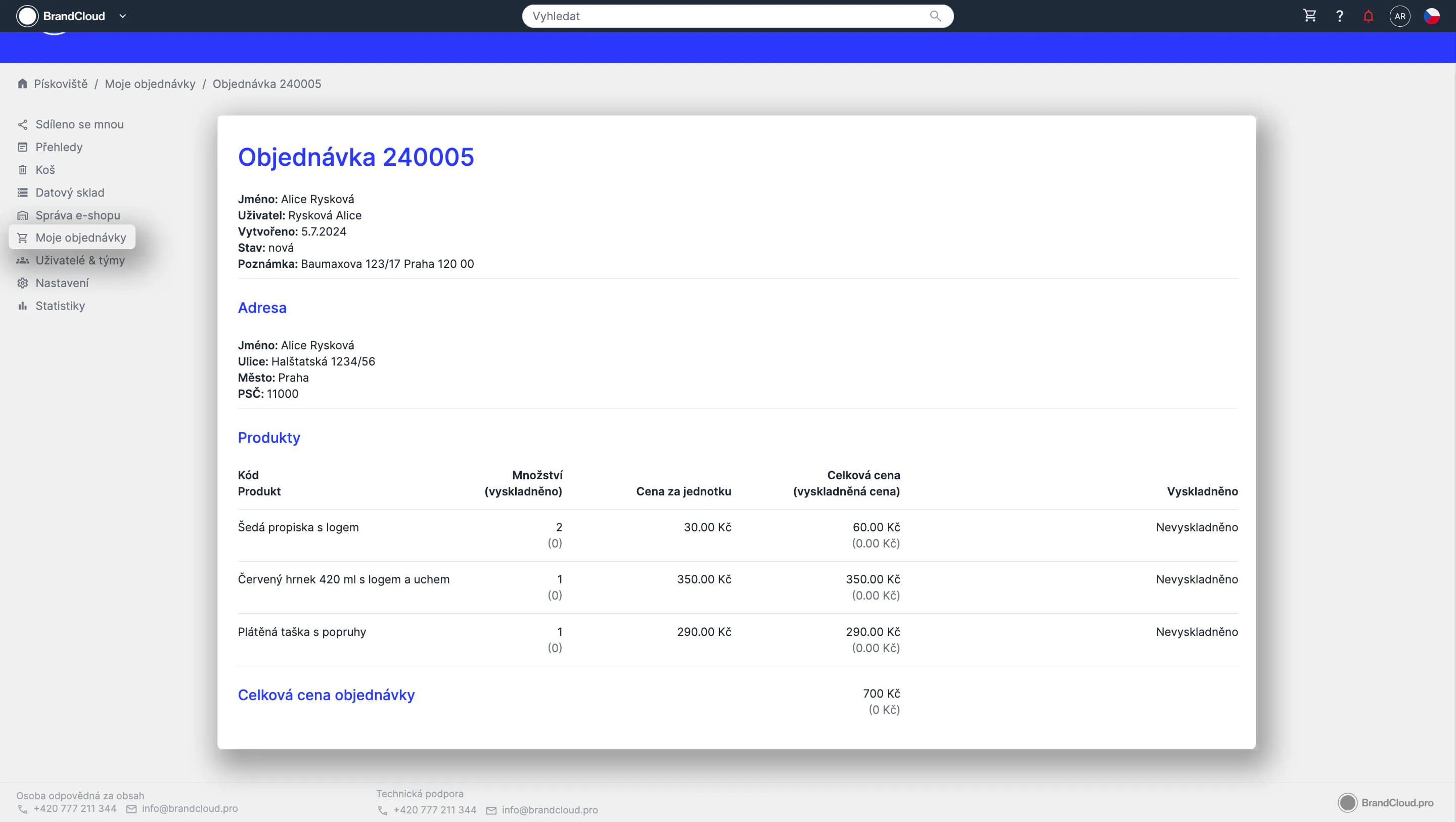 User má přístup k sekci Moje objednávky, kde vidí všechny dříve odeslané objednávky a jejich aktuální stav.