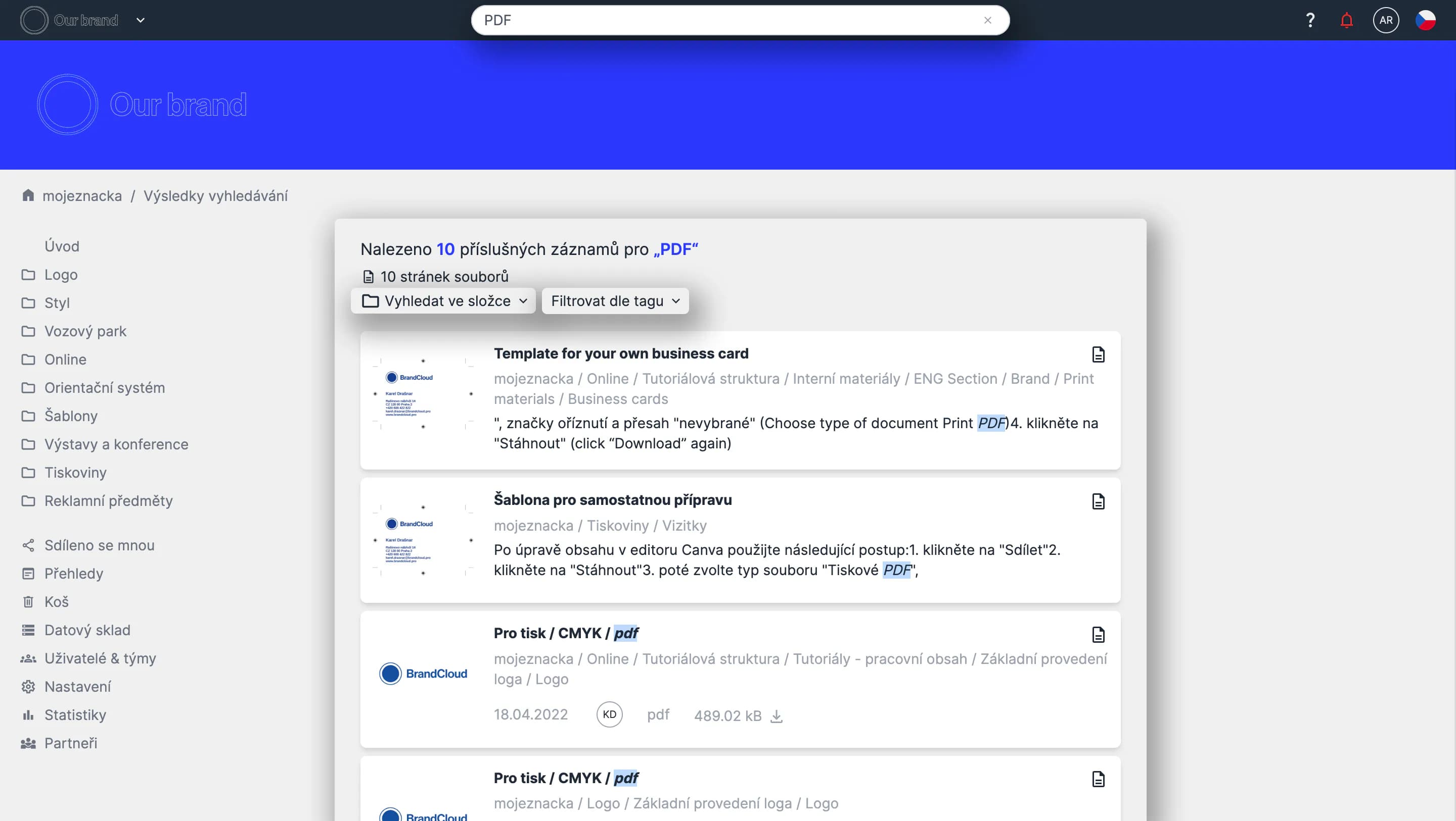 - V horní liště platformy zadej hledaný výraz, koncovku, formát nebo tag.