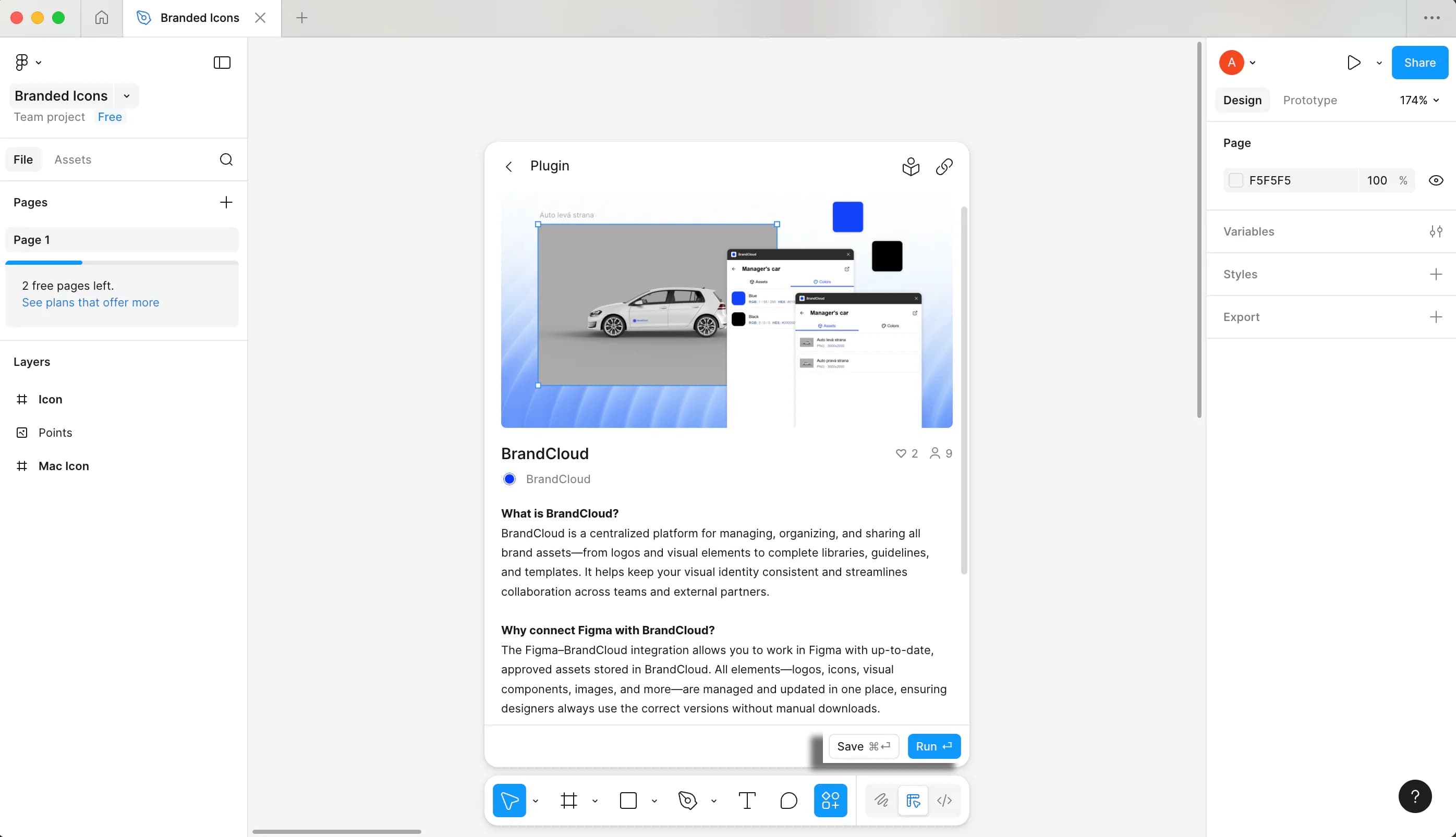 Integraci Figmy můžeš využít, pokud pracuješ v prostředí Figmy a potřebuješ přistupovat k souborům uloženým v BrandCloudu. Díky propojení není nutné soubory stahovat a znovu nahrávat – přístup k nim budeš mít přímo z Figmy.