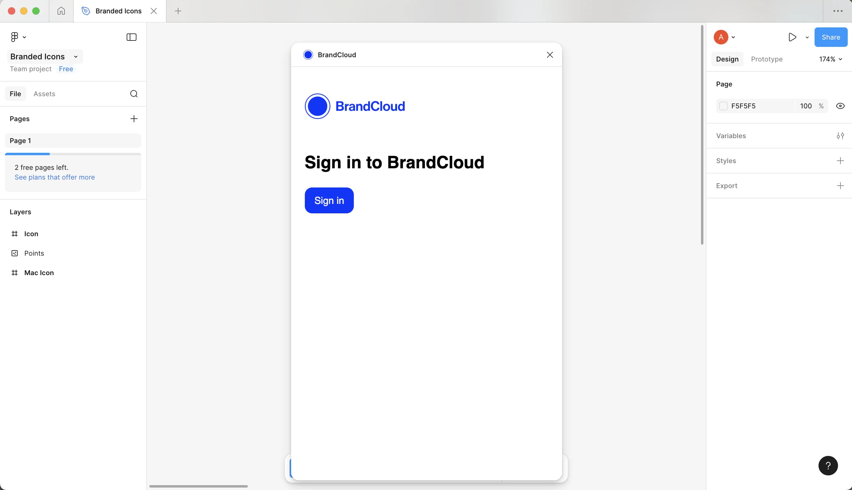 4. Následně budeš vyzván k přihlášení do svého BrandCloudu. Pro přihlášení budeš přesměrován do prohlížeče přímo do BrandCloudu, kde se přihlásíš svými obvyklými přihlašovacími údaji. Pak budeš automaticky přesměrován zpět do Figmy.