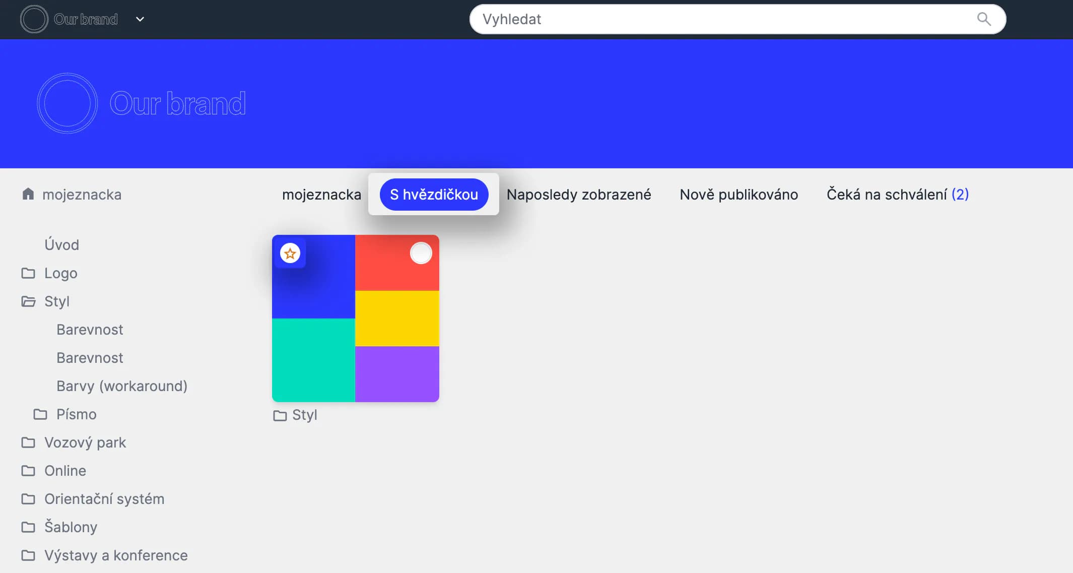 V BrandCloudu můžeš obsah označit hvězdičkou, čímž se přidá do oblíbených a usnadní jeho vyhledávání.