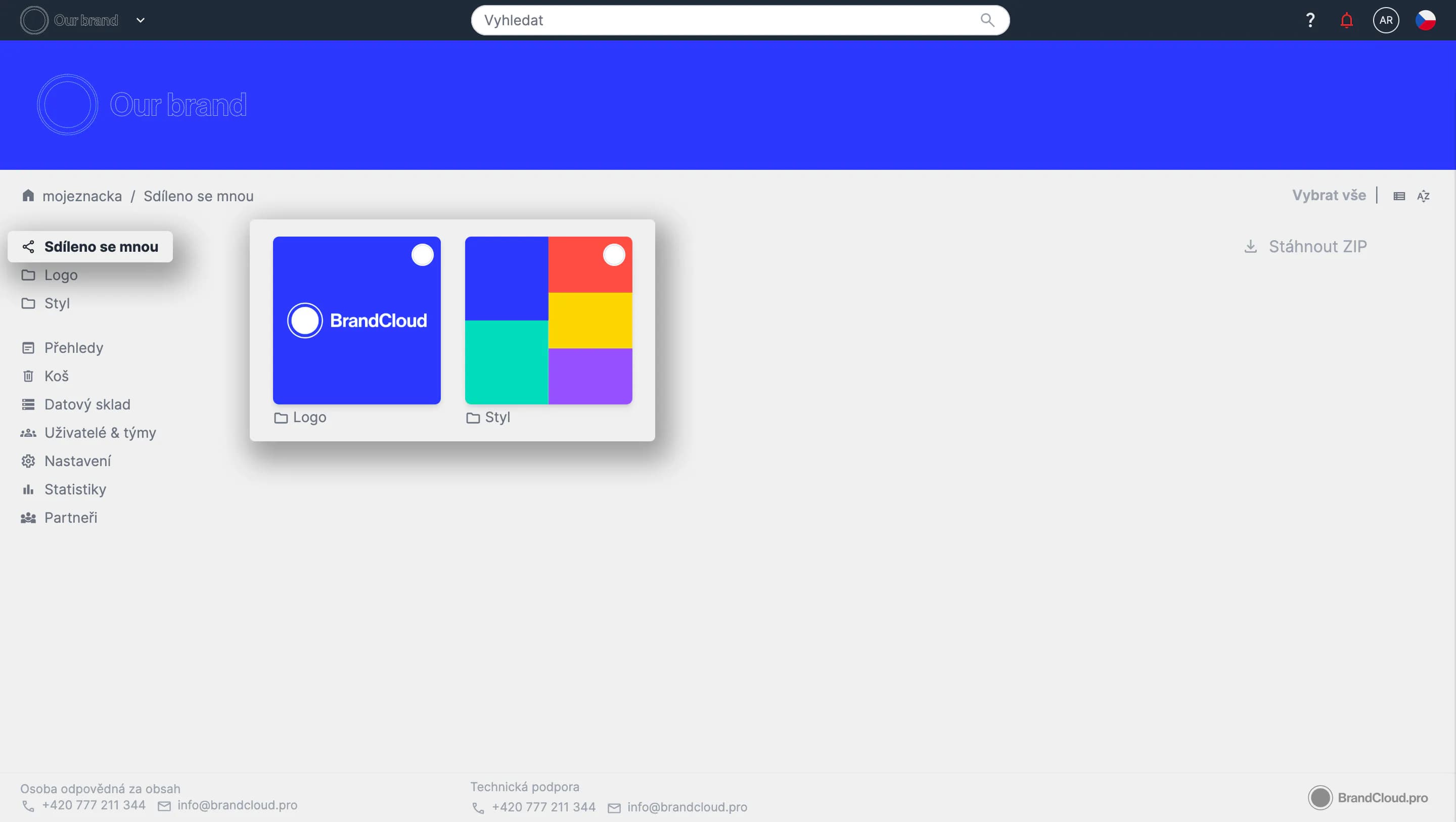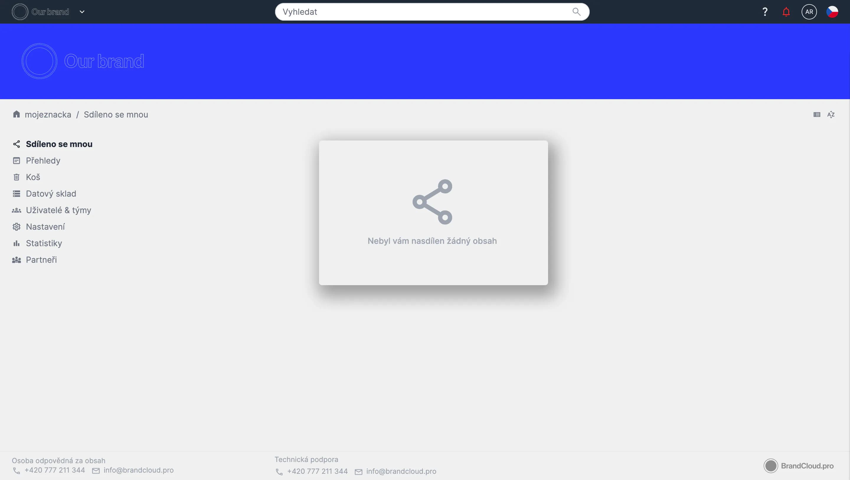💡 Pokud máš přístup k více instancím BrandCloudu, v každé z nich uvidíš pouze obsah sdílený v rámci daného prostředí. Sdílený obsah z BrandCloudu 🅰️ se tedy nezobrazí při přihlášení do BrandCloudu 🅱️.
