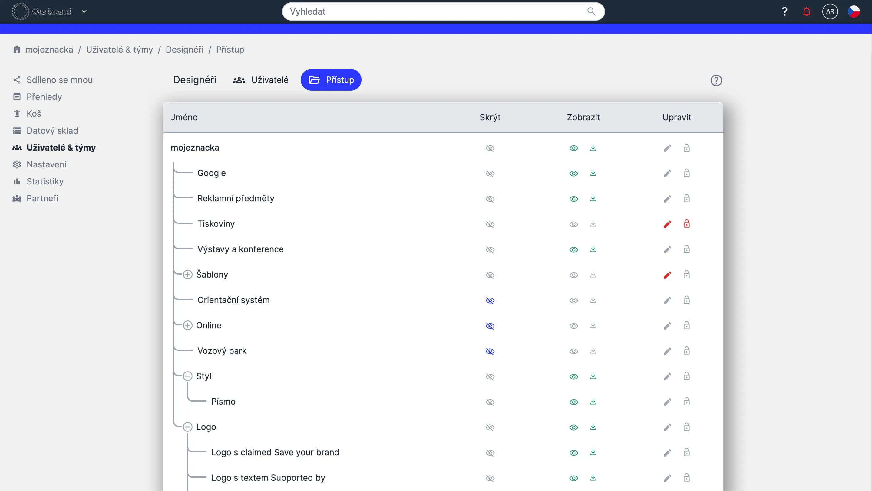 Pro podrobnější informace o nastavování oprávnění přejdi do sekce Nastavení přístupů.