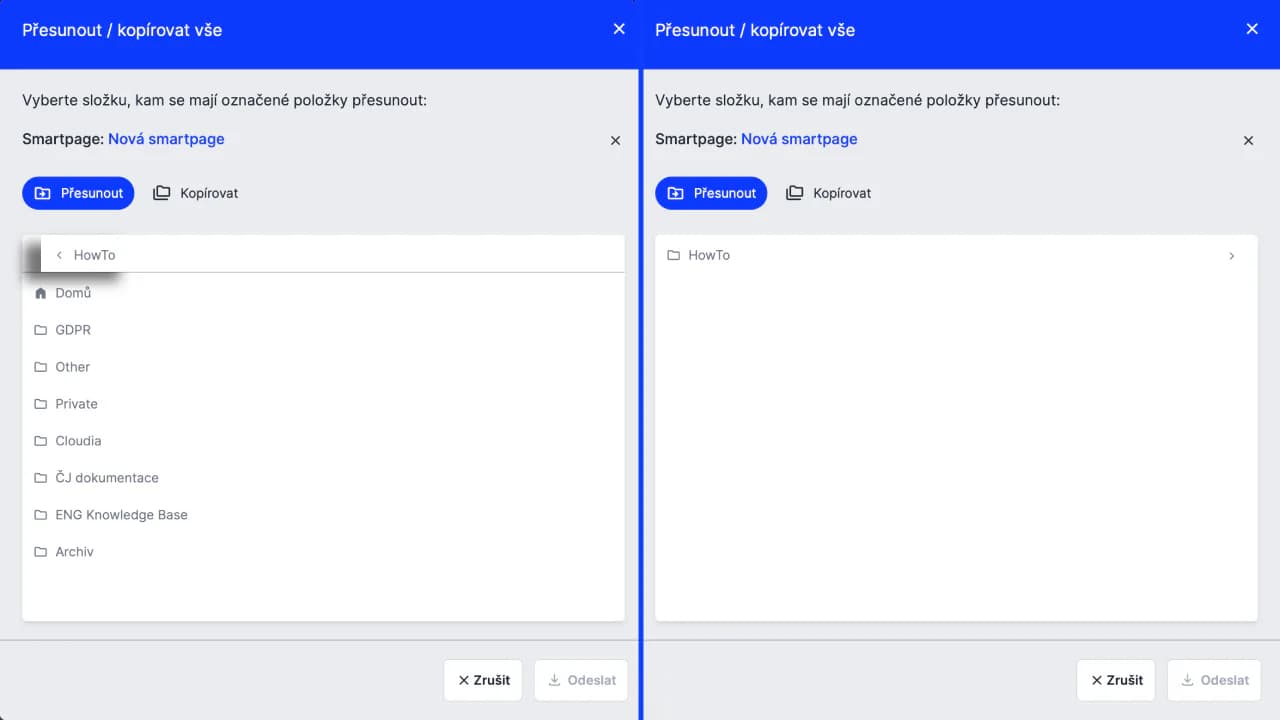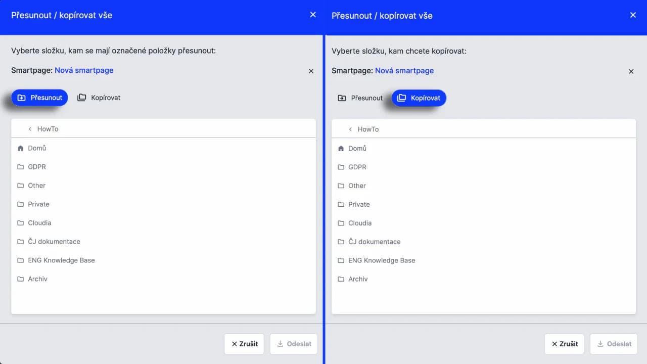 - Jak přesunout nebo kopírovat složky, smartpages nebo jejich části.