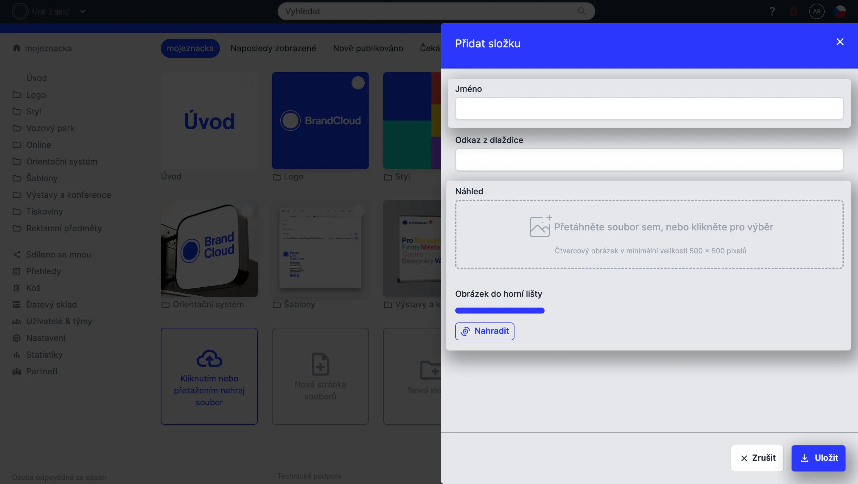 - V případě potřeby nahrajte vlastní náhled složky. Náhled lze upravit i později v nastavení složky.