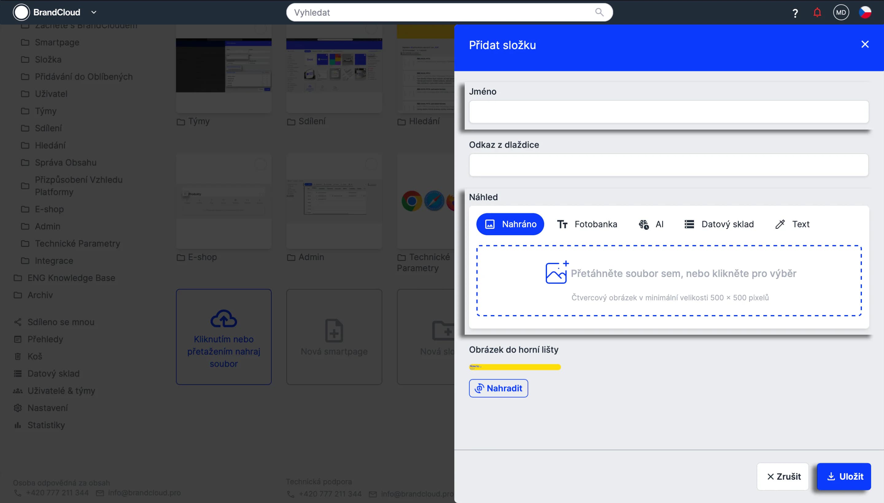 - Pro větší přizpůsobení můžete nahrát obrázek do horní lišty složky. Tento obrázek se zobrazí nejen ve složce, ale i v jejích podřízených složkách a smartpages.