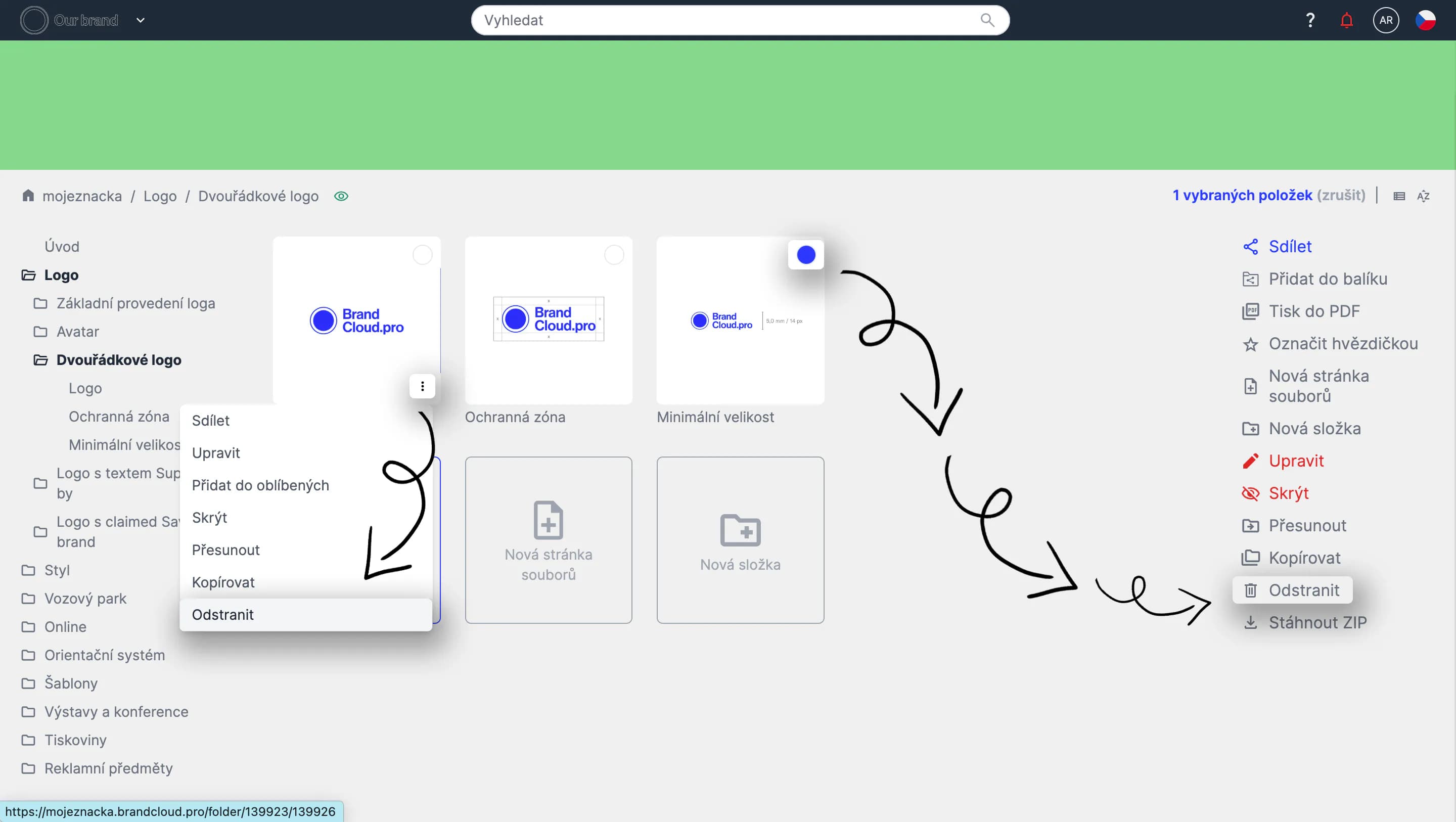 Mazání mohou provádět administrátoři a uživatelé s oprávněním k úpravám, buď v celé platformě (tým Upravovat vše), nebo v rámci přidělené části platformy.