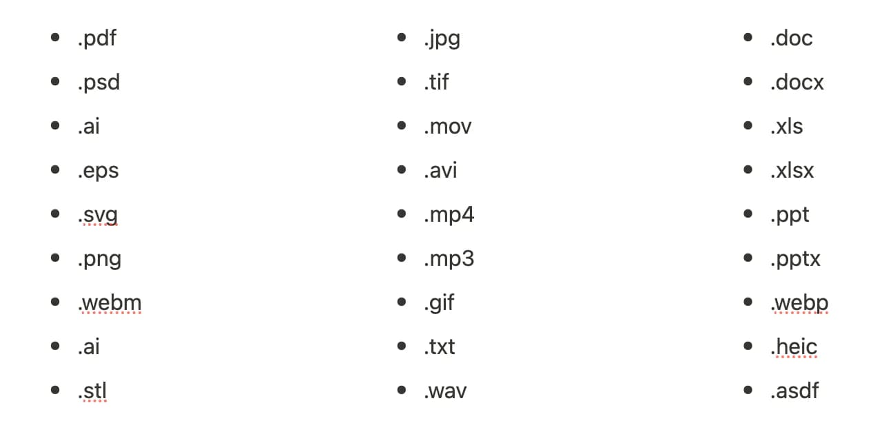 Do platformy lze nahrát a uložit všechny typy souborů a zobrazit náhled téměř libovolného formátu, např.: