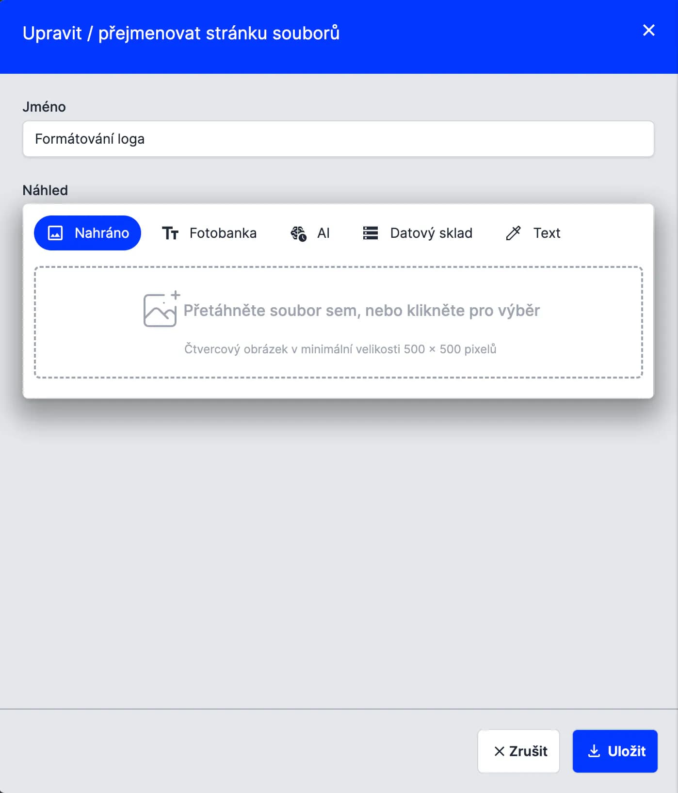 Poznámka: Doporučené minimální rozlišení náhledu je 500 × 500 px.