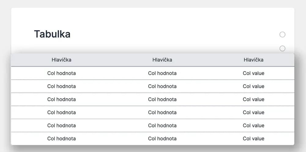 Element Tabulka umožňuje vložit do smartpage upravitelnou tabulku.