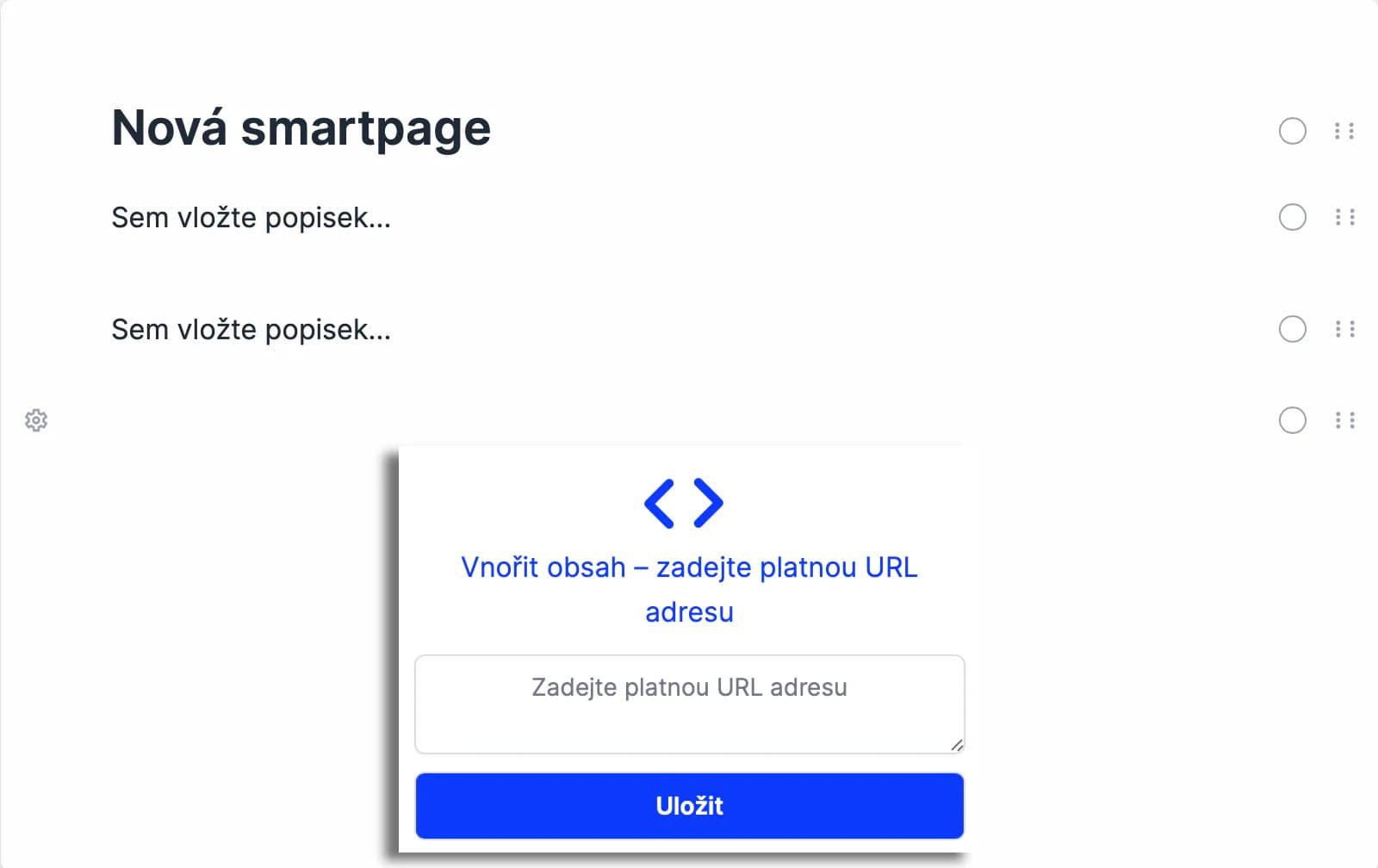 - Zadejte platnou URL nebo Embed kód a uložte změny.