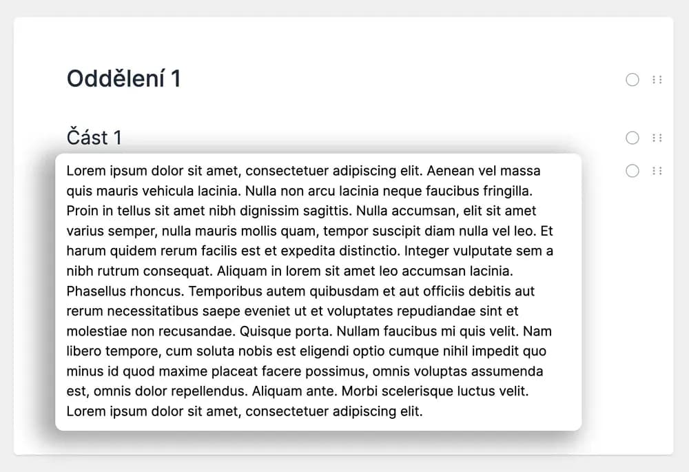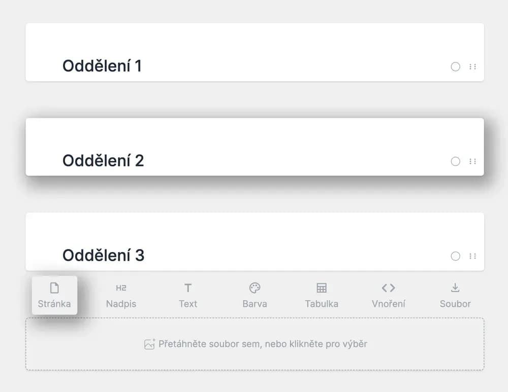 Element Stránka umožňuje rozdělit smartpage do oddílů a uspořádat její obsah. Díky tomu získáš přehlednou strukturu.