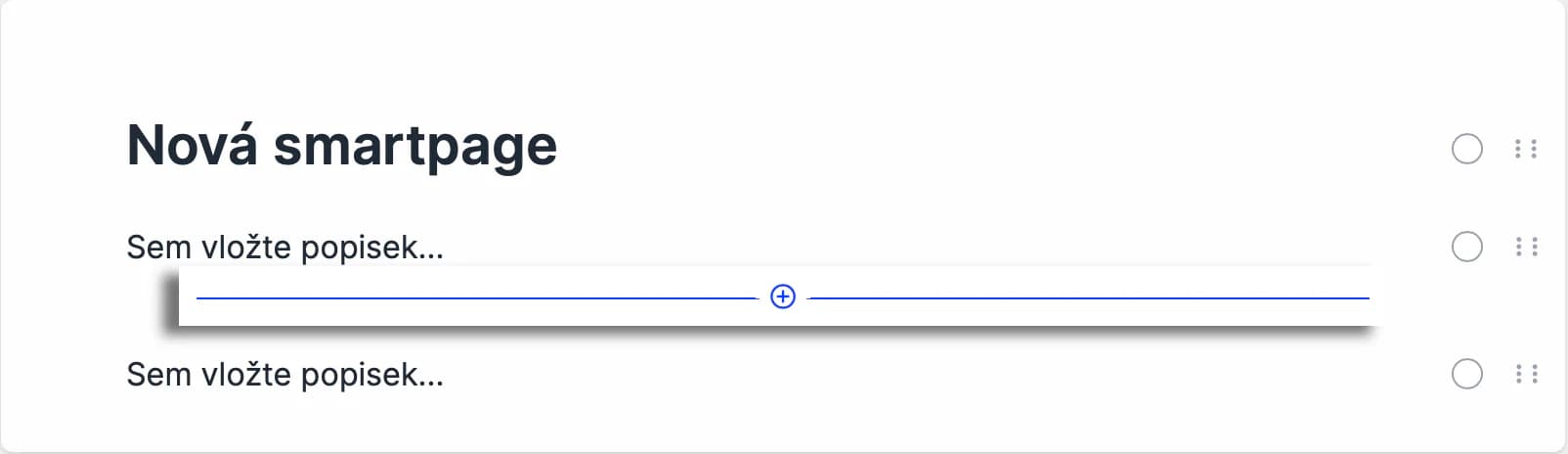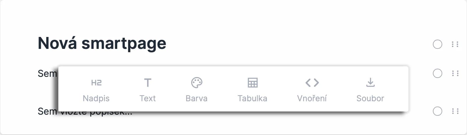 Z nabídky vyberte požadovaný element a vložte jej do smartpage.
