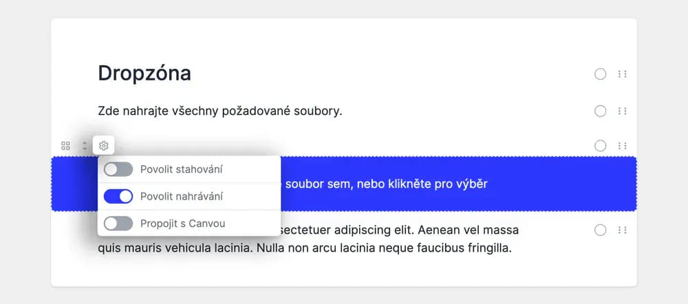 Element lze nakonfigurovat také jako prostor pro nahrávání bez nutnosti přihlášení. Po sdílení odkazu mohou soubory nahrávat i externí osoby, například kolegové, klienti nebo dodavatelé.