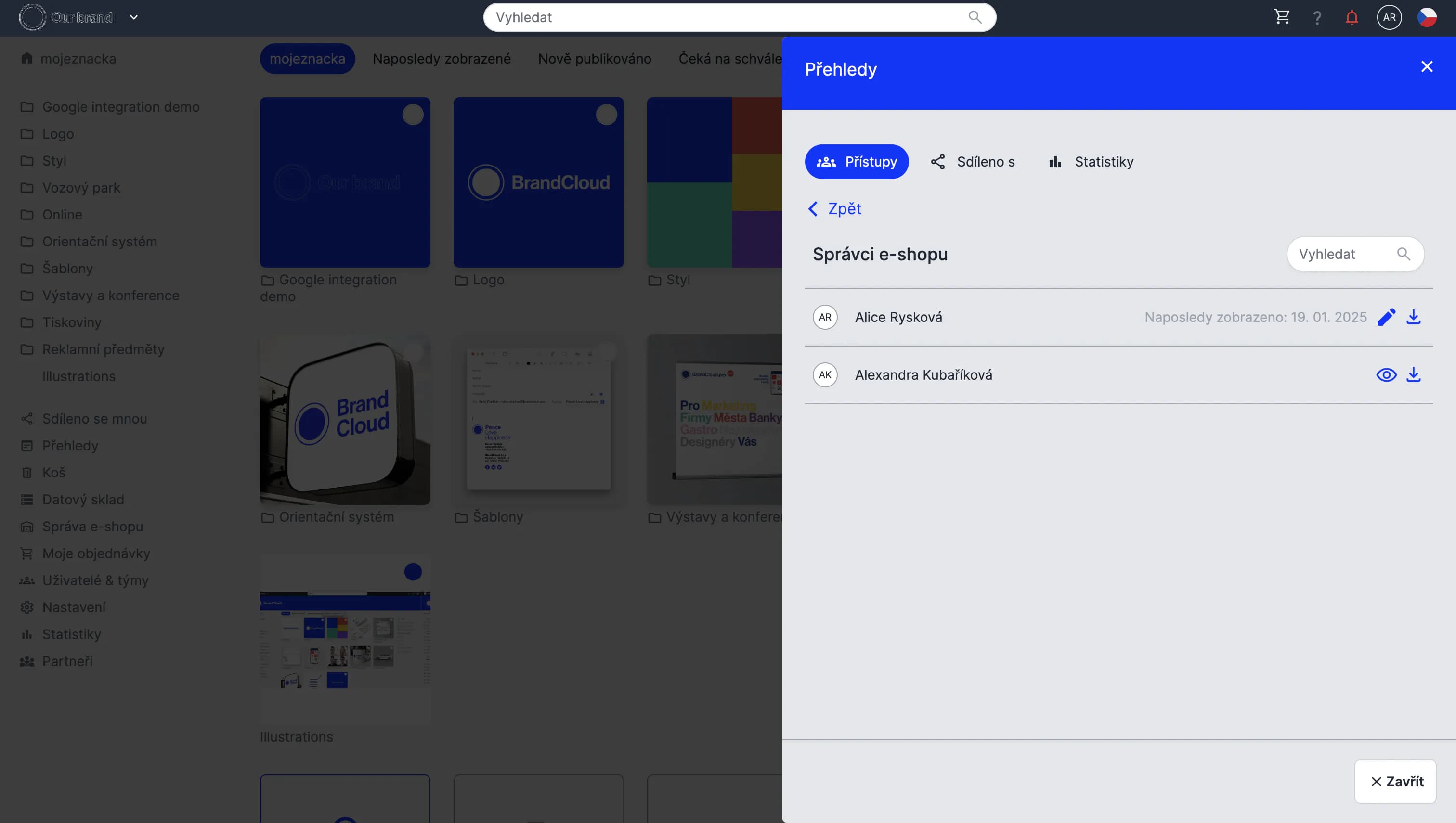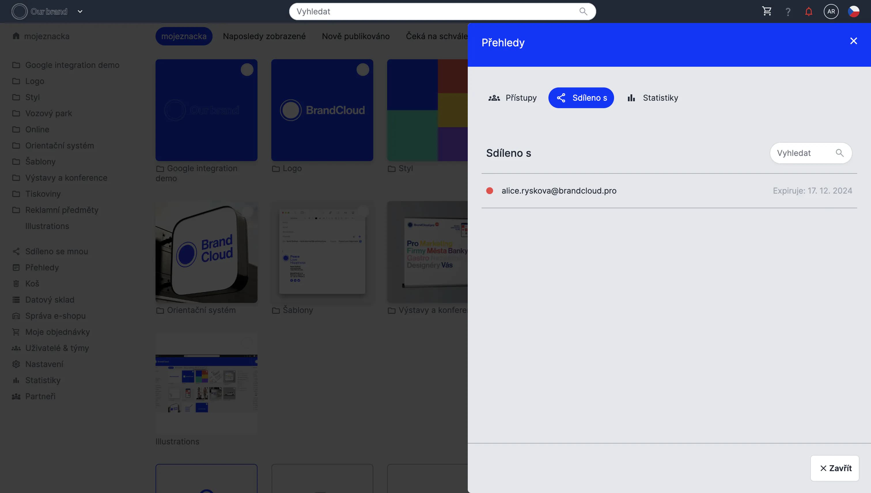 - s kým je obsah sdílen, zda je sdílení aktivní a kdy vyprší,