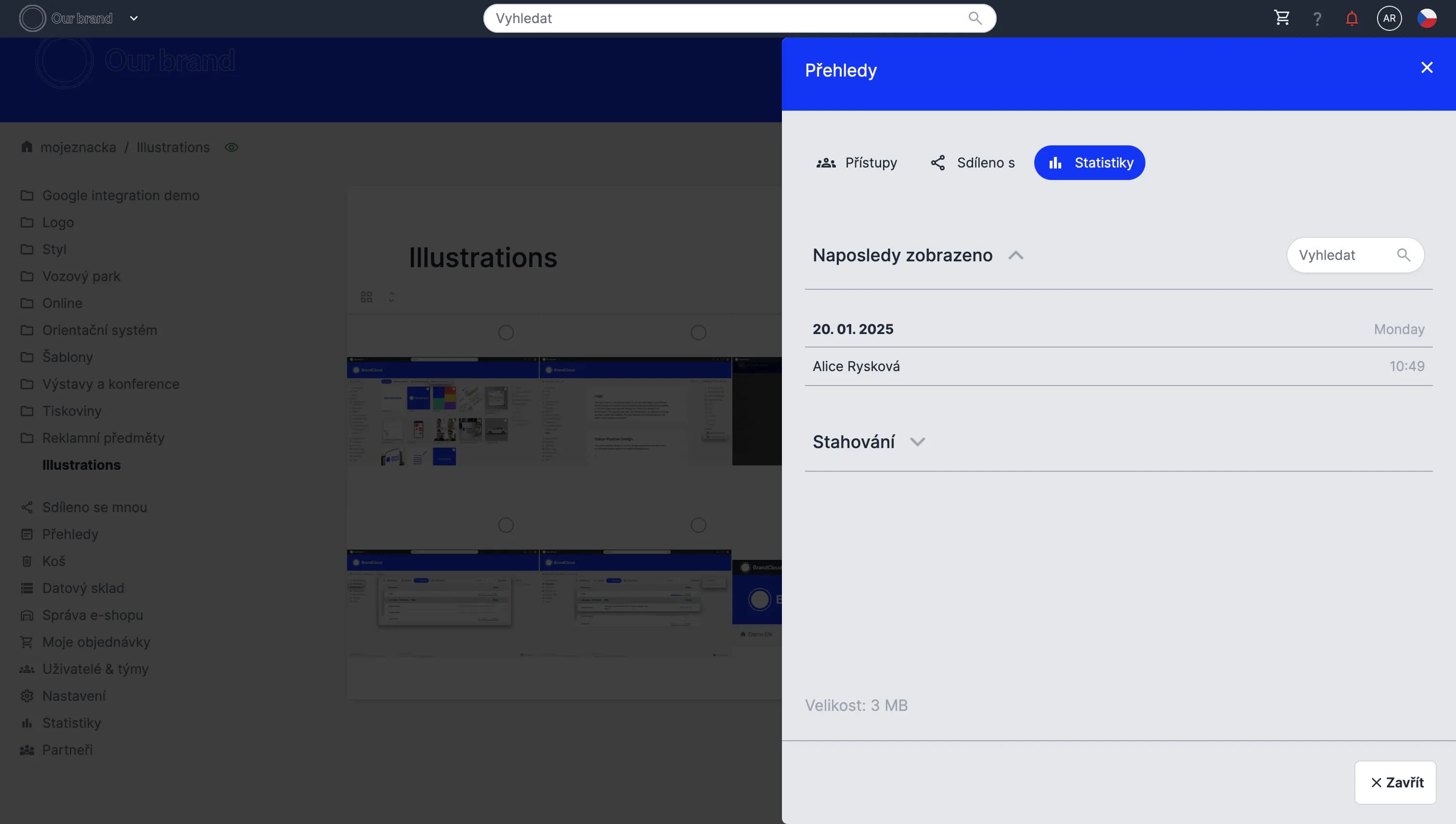 Ukázka sekce Statistiky s náhledem Naposledy zobrazeno