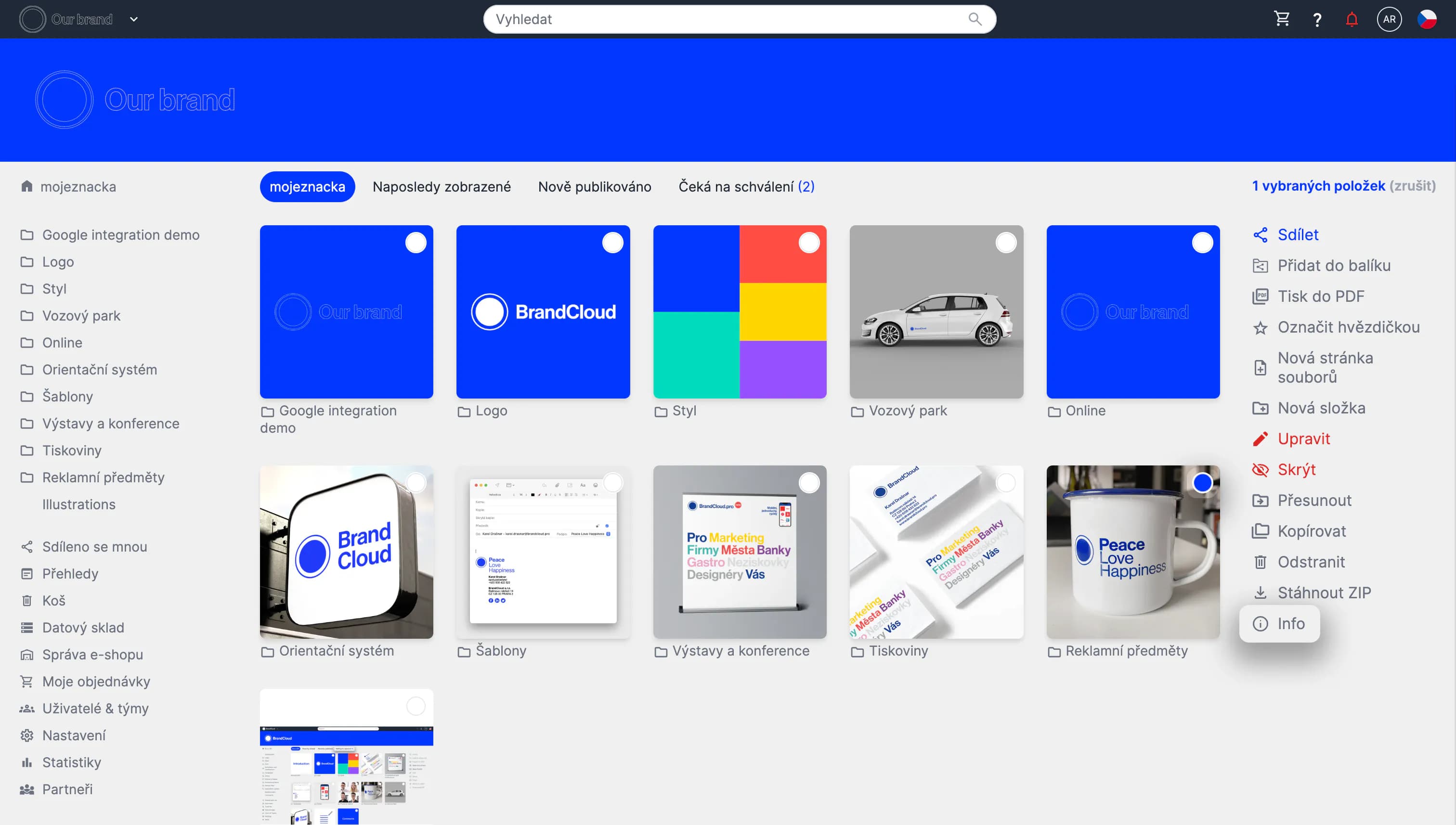 Infopanel umožňuje rychlý přehled o vybrané smartpage nebo složce.