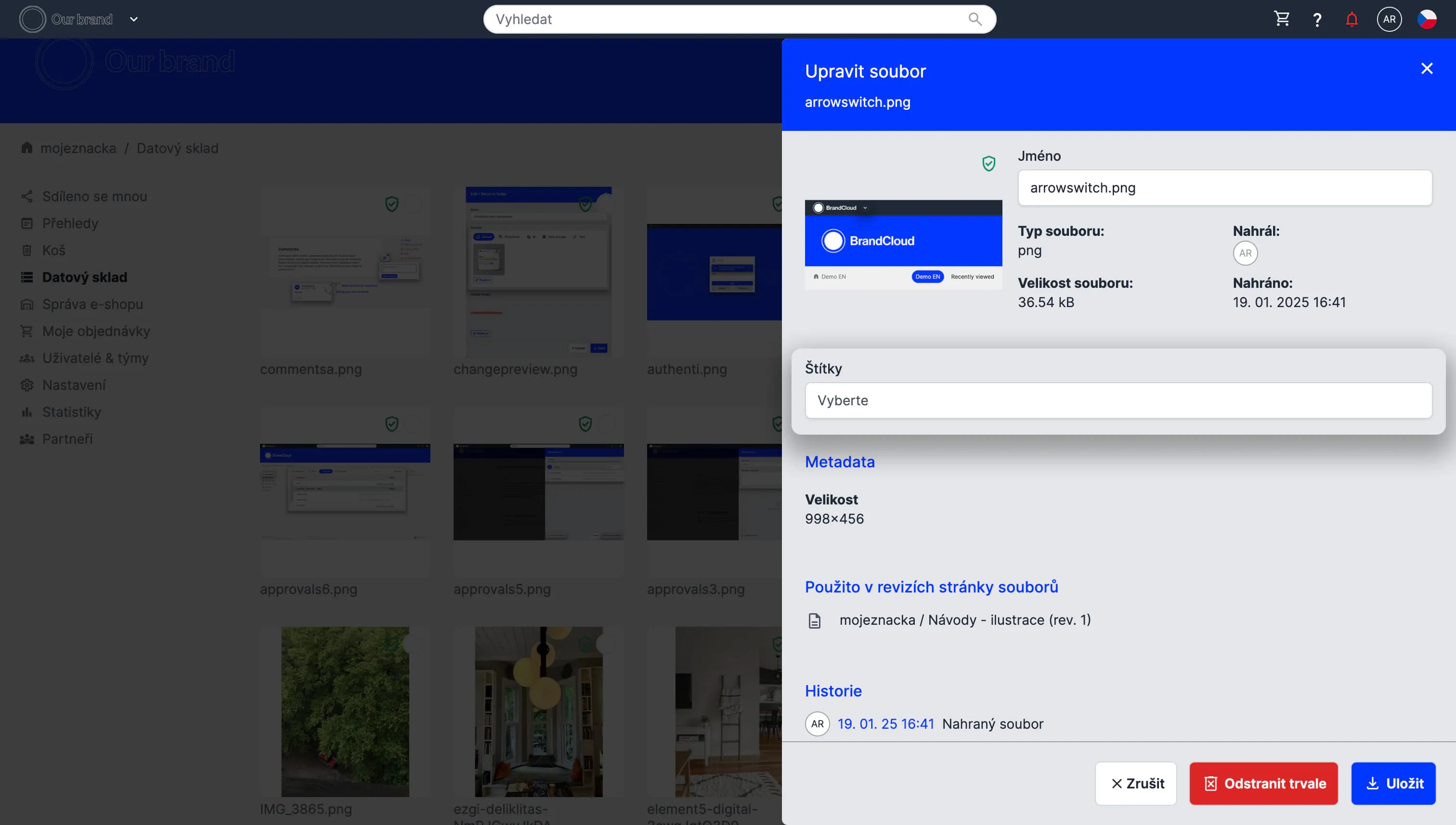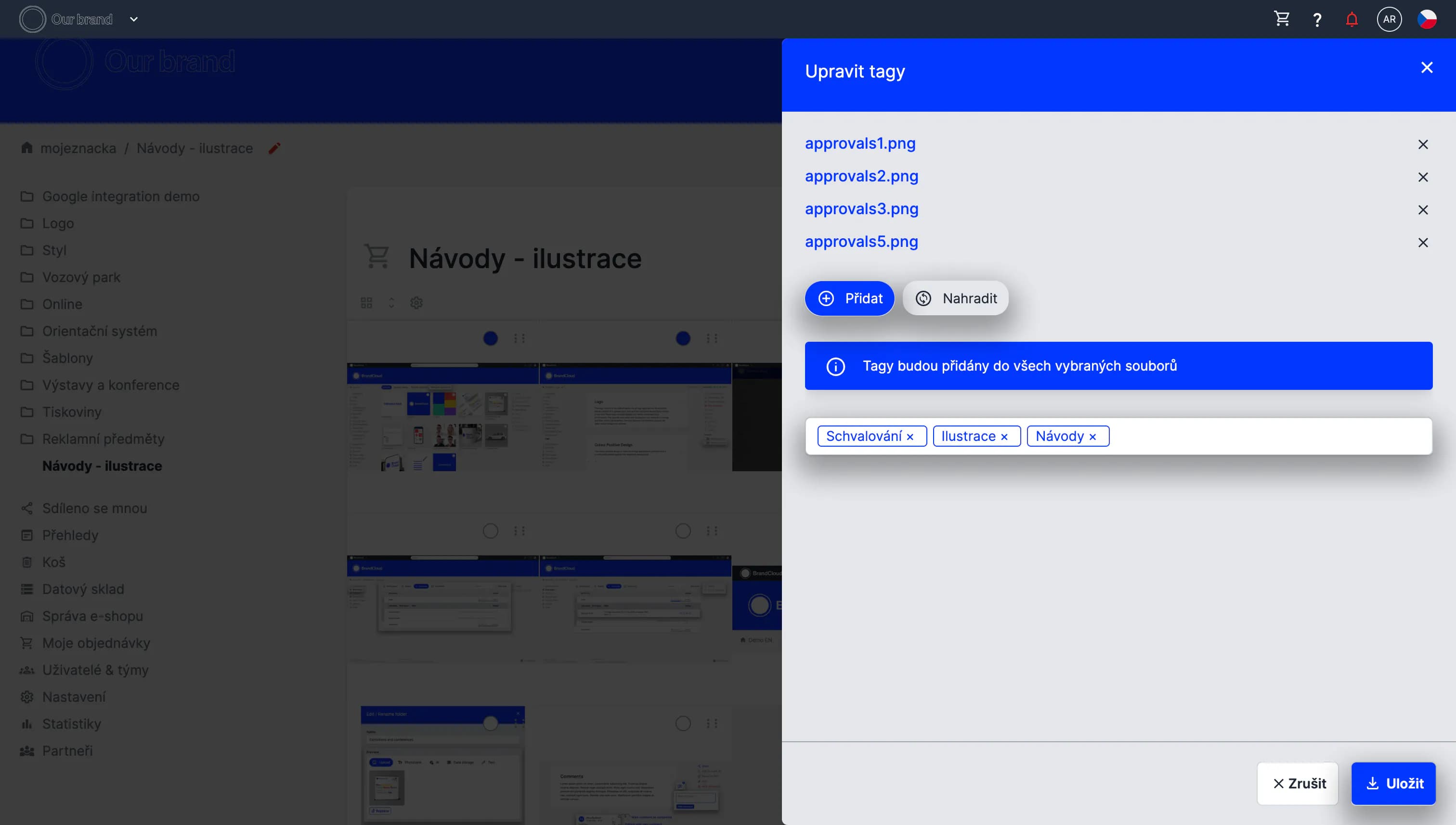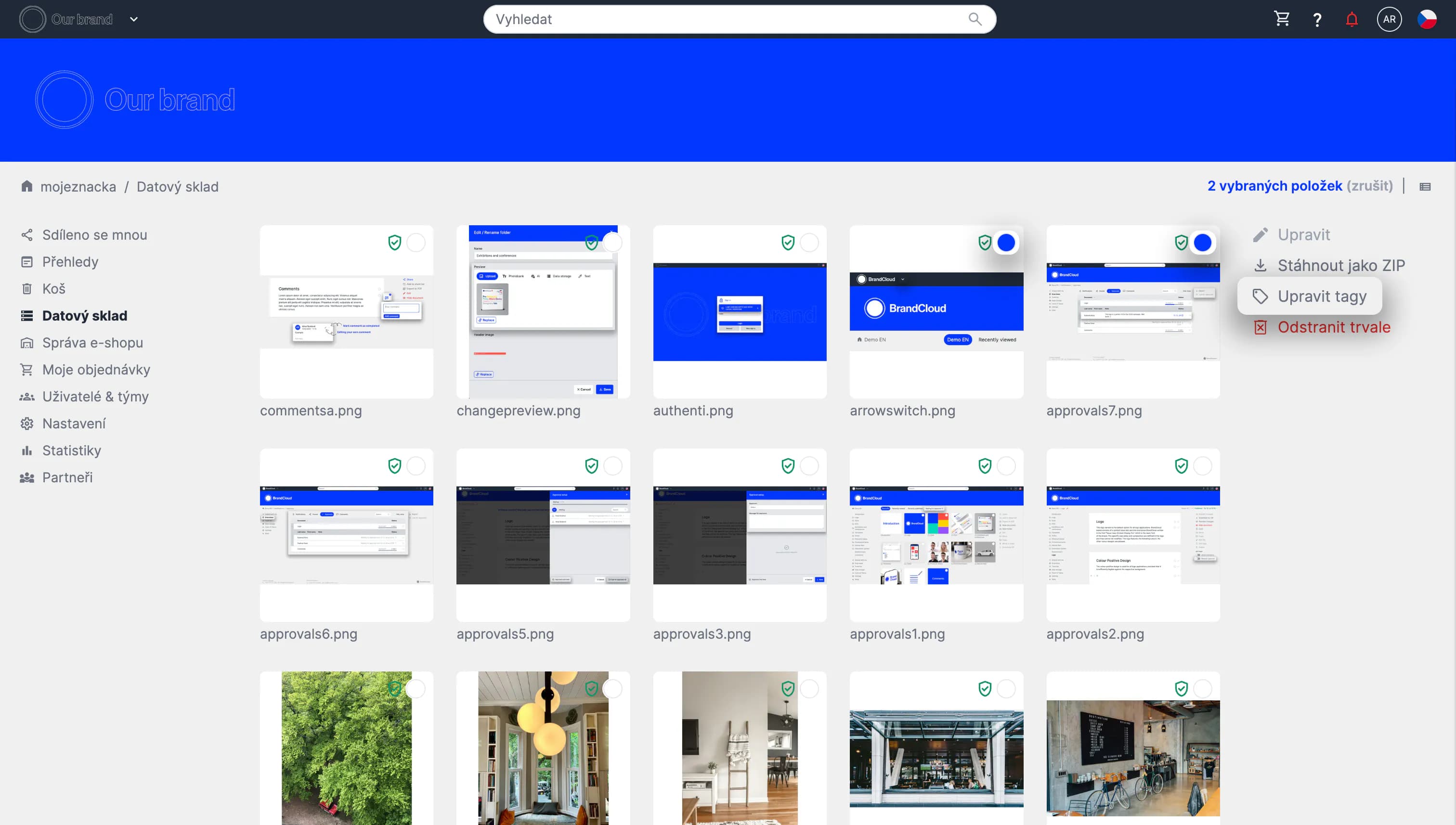 Tagování slouží k organizaci obsahu a jeho snadnějšímu vyhledávání. Přidáním jednoho nebo více tagů k libovolnému assetu můžeš obsah rozdělit do skupin a filtrovat výsledky podle kategorií.