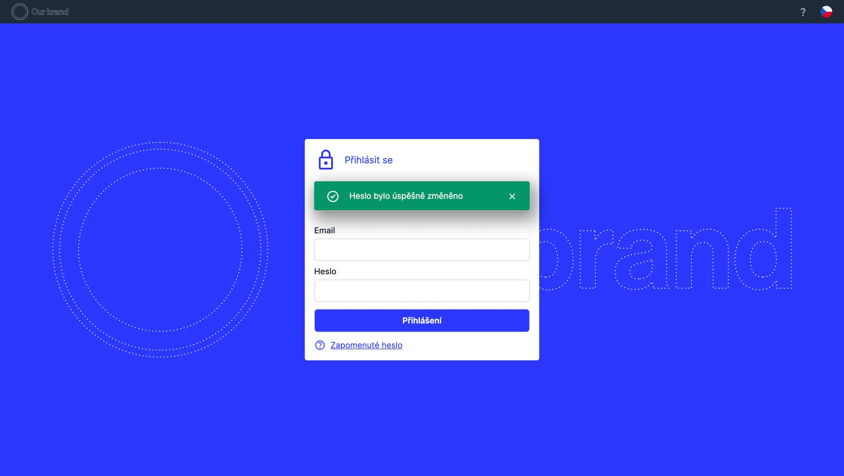 5. Po zadání nového hesla budete přesměrováni zpět na přihlašovací stránku. Nyní se můžete přihlásit s novým heslem.