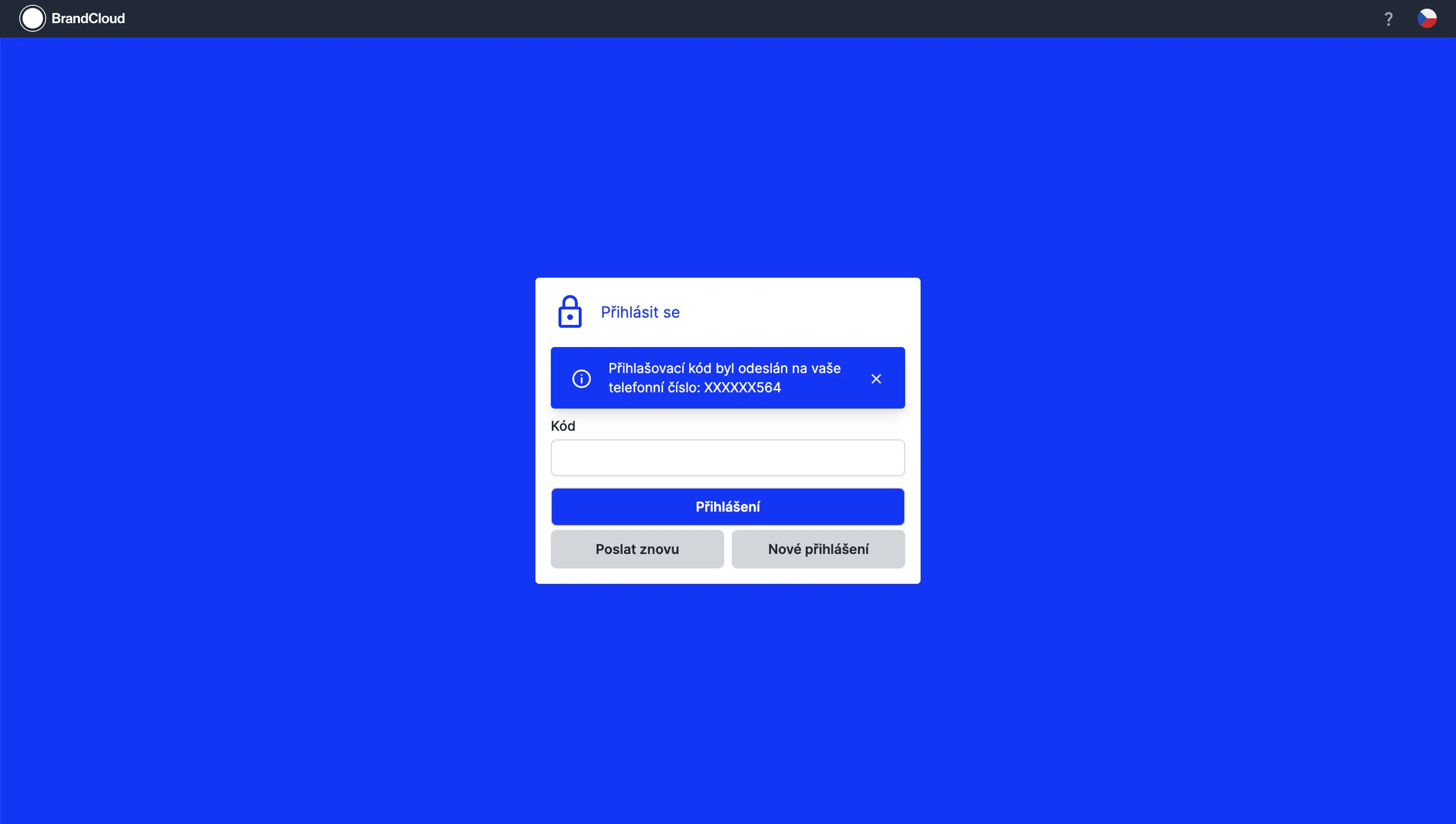 2. Zadej šesticiferný kód doručený na tvé telefonní číslo a potvrď přihlášení.