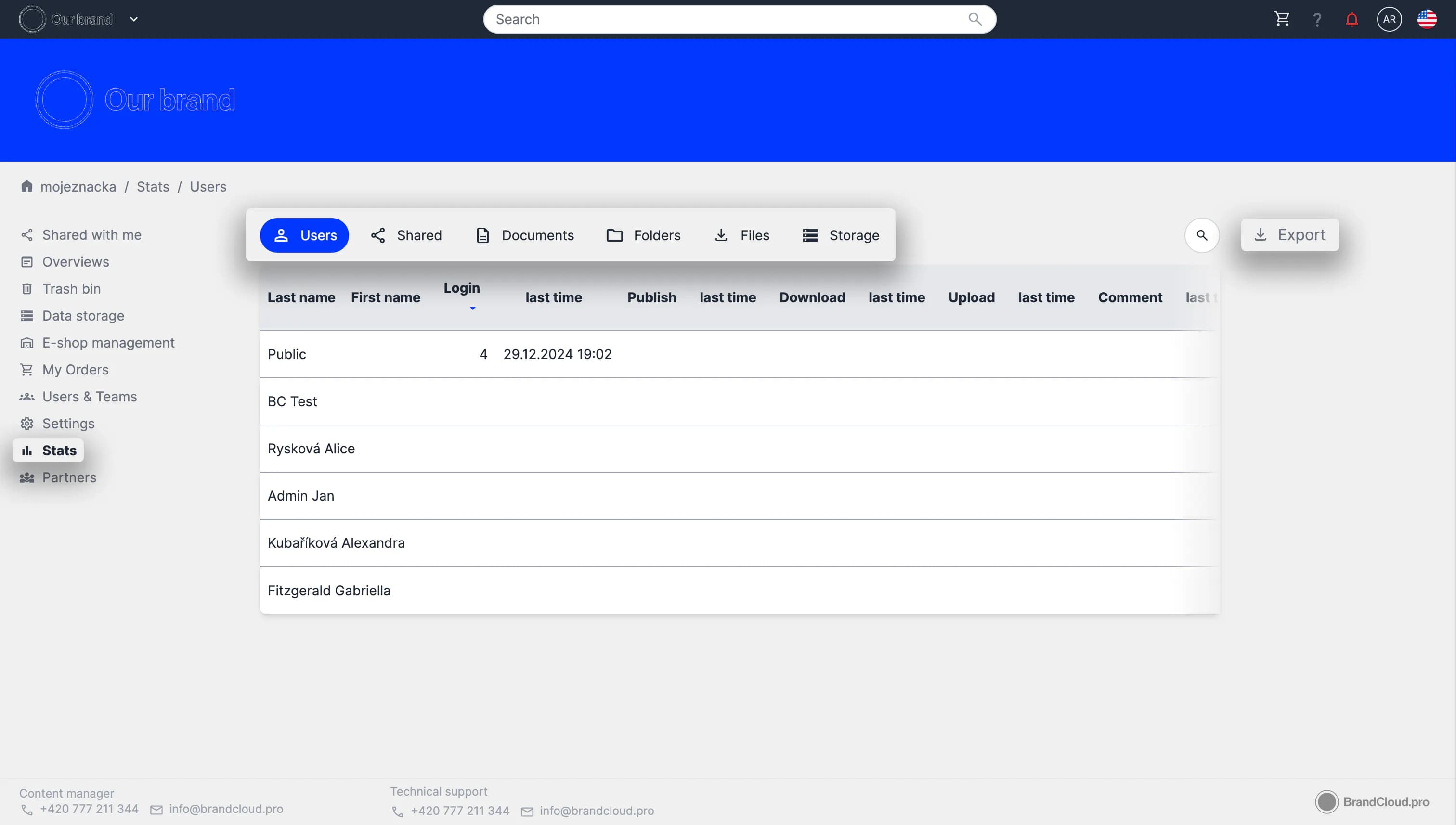 Stats is the section where you'll find all the data on user activity (e.g. logins), documents, folders, downloads and more.