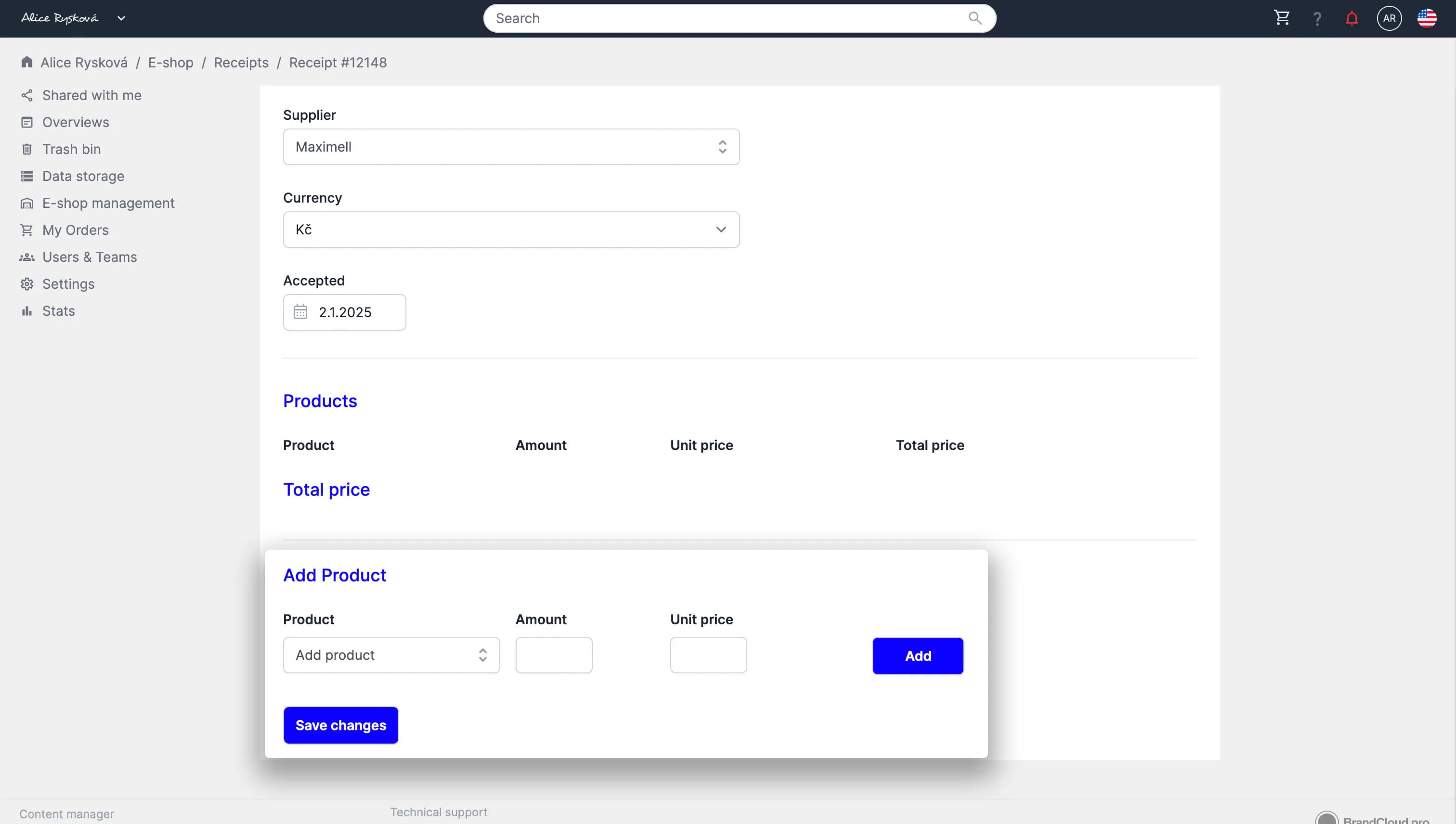 6. When you have added all the stocked products to the Receipt, complete the stocking with the Save Changes button.