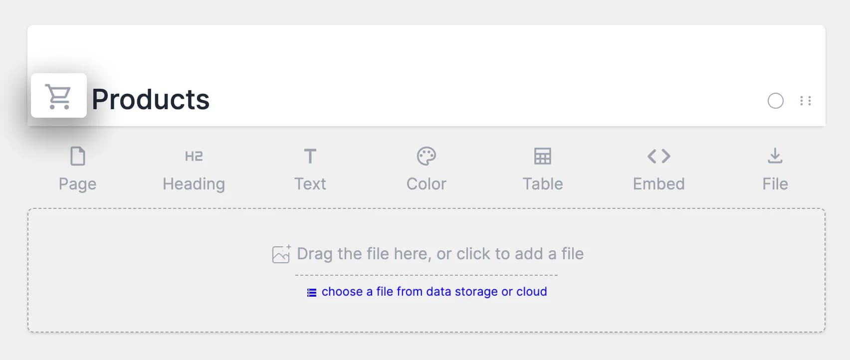 2. On the left side of the name, there is a cart icon. Click it to add a product listing element to the page.