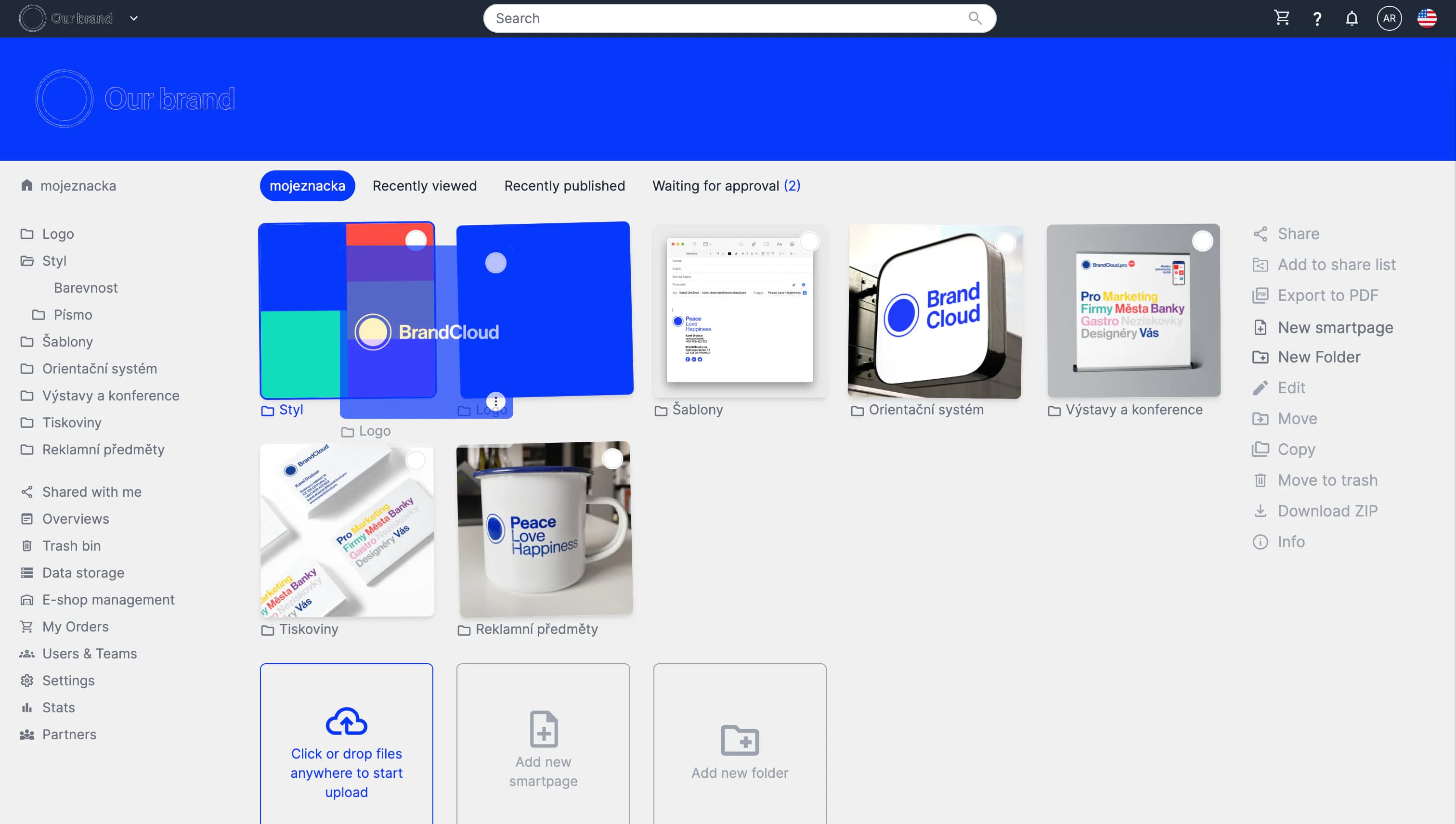 You can use drag & drop to organize folders and smartpages. This method allows you to quickly restructure content and place it where needed.