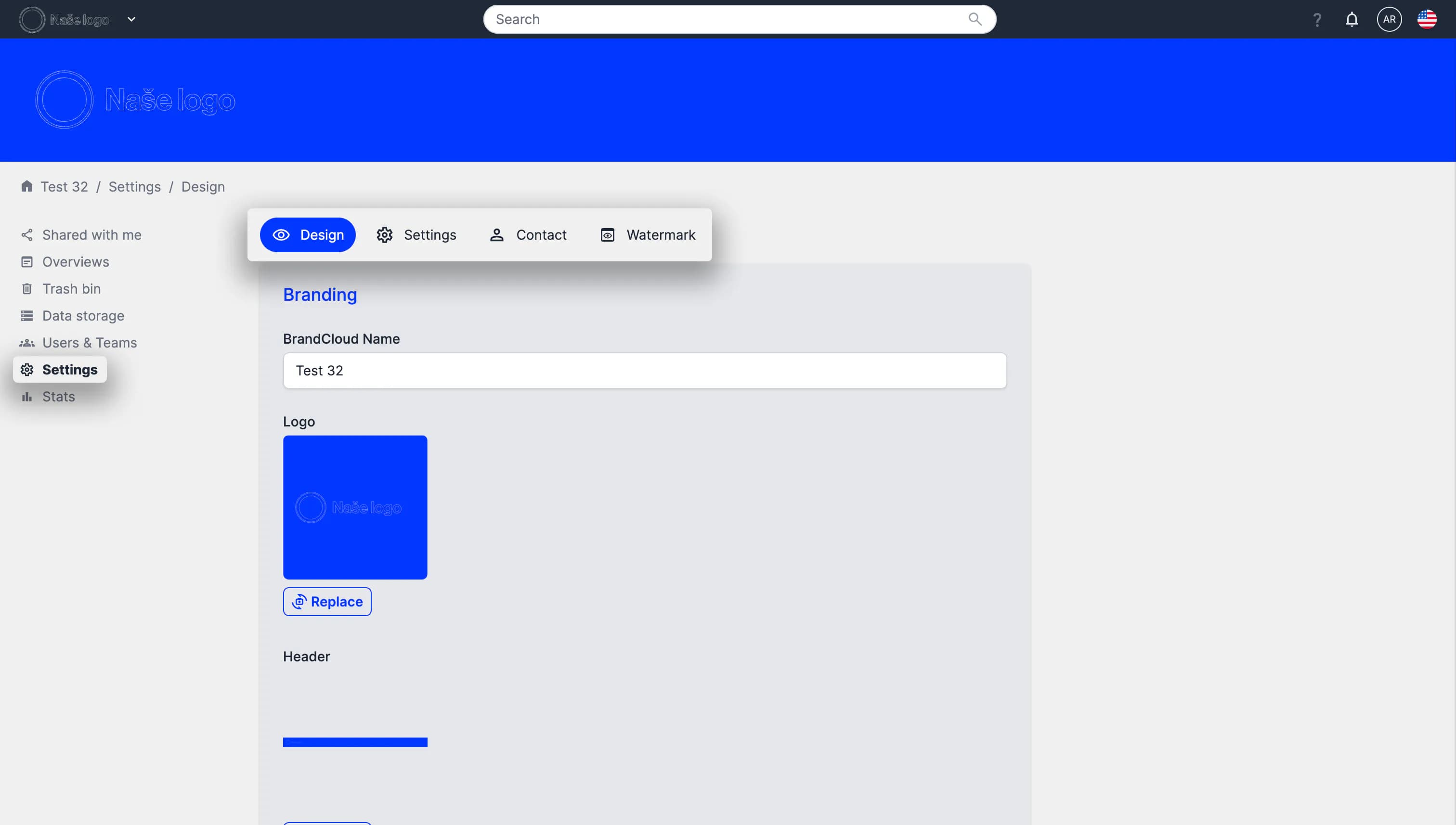 In the Settings section, you can manage the look and design of the platform and basic settings related to user passwords, platform behaviour and user notifications.