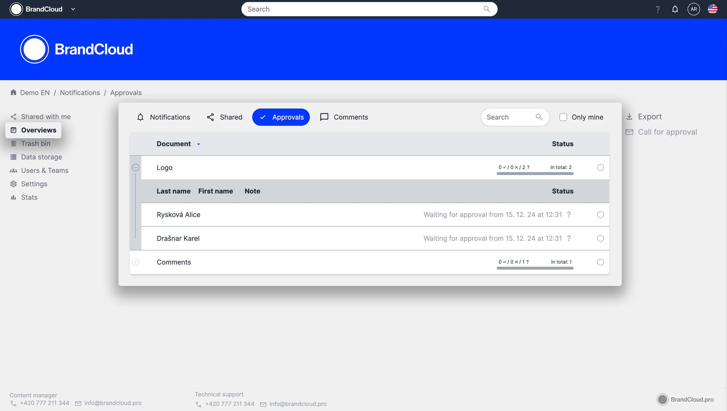 Users can also post notes to their approval/disapproval while approving, which you can also view in Overviews. There you can see exactly the details: when the request was received, when the user approved/disapproved, the note.