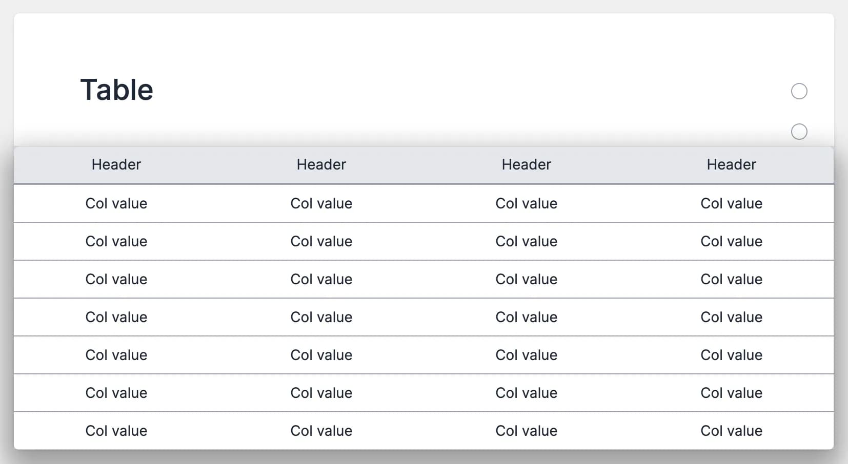 Use the Table function to add an editable table to your page. You can customize the number of columns, rows, headings and content.