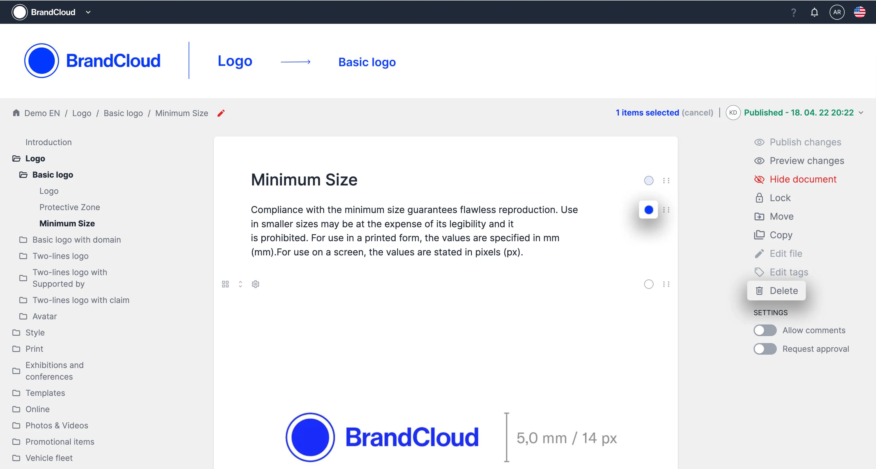 Deleting can be done by administrators and users with permission to edit either the entire platform (members of the Edit All team) or to edit parts of the platform dedicated to a specific team.