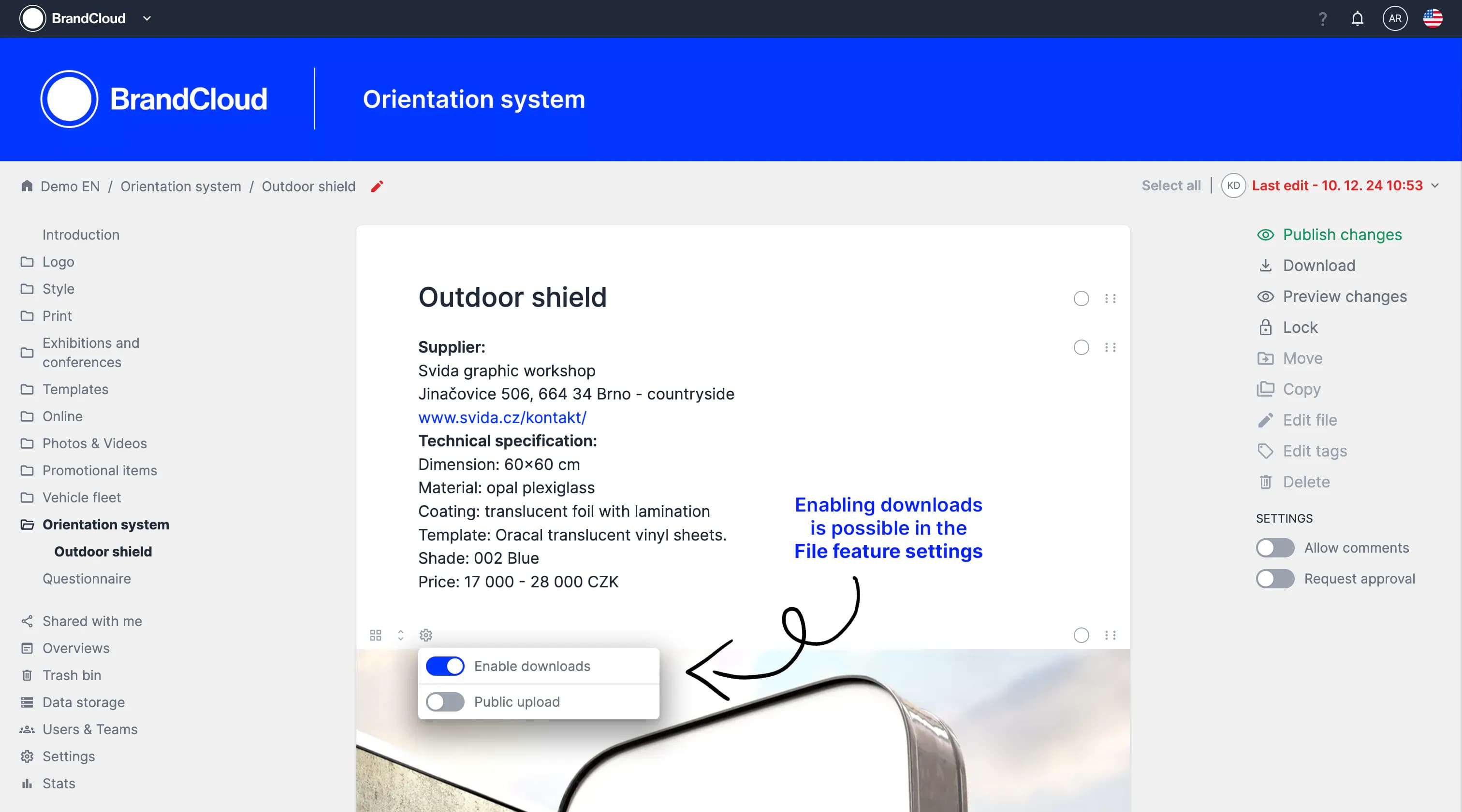 - You can download files from a smartpage if downloading is enabled in the Access settings of the parent folder or directly in the File element settings.