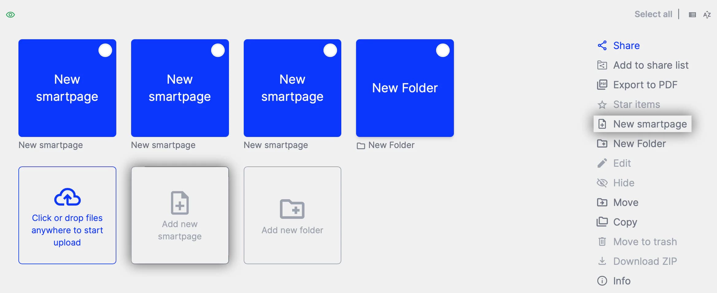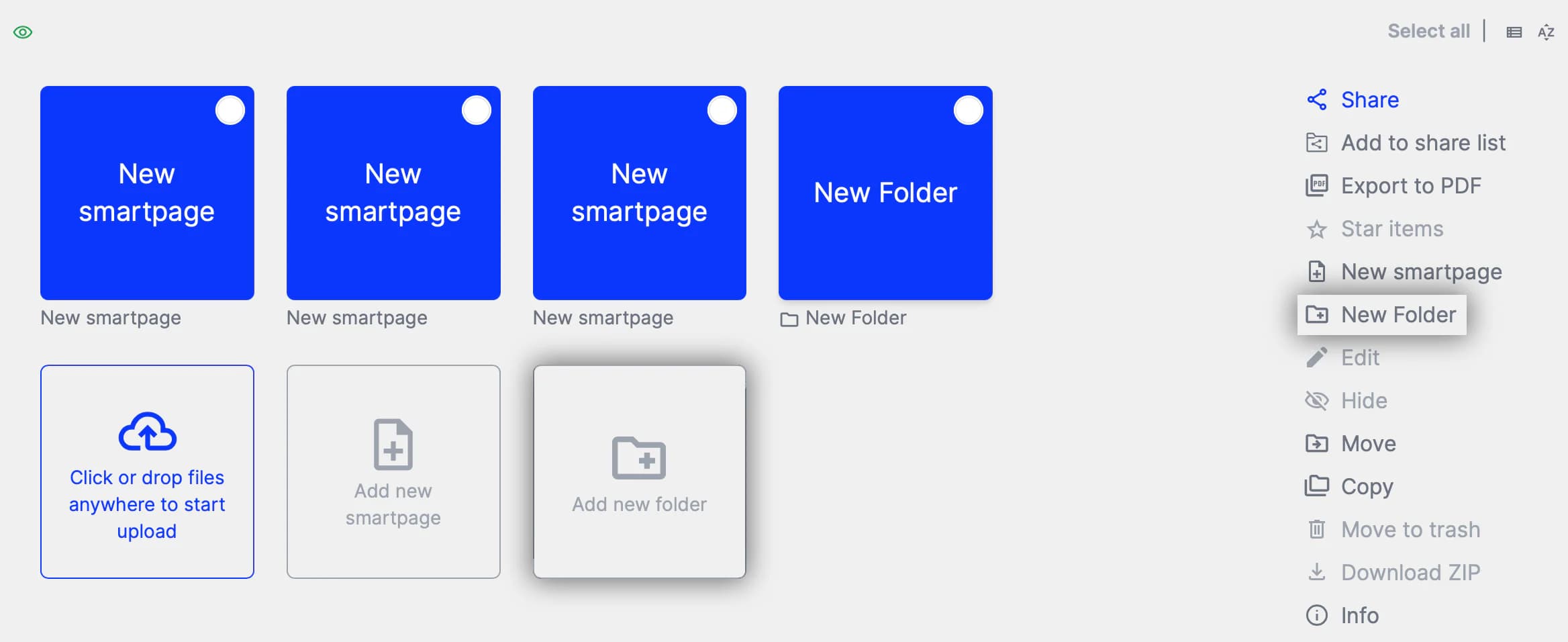 You can organize all uploaded assets into folders and smartpages, depending on how you want to display and manage your materials.