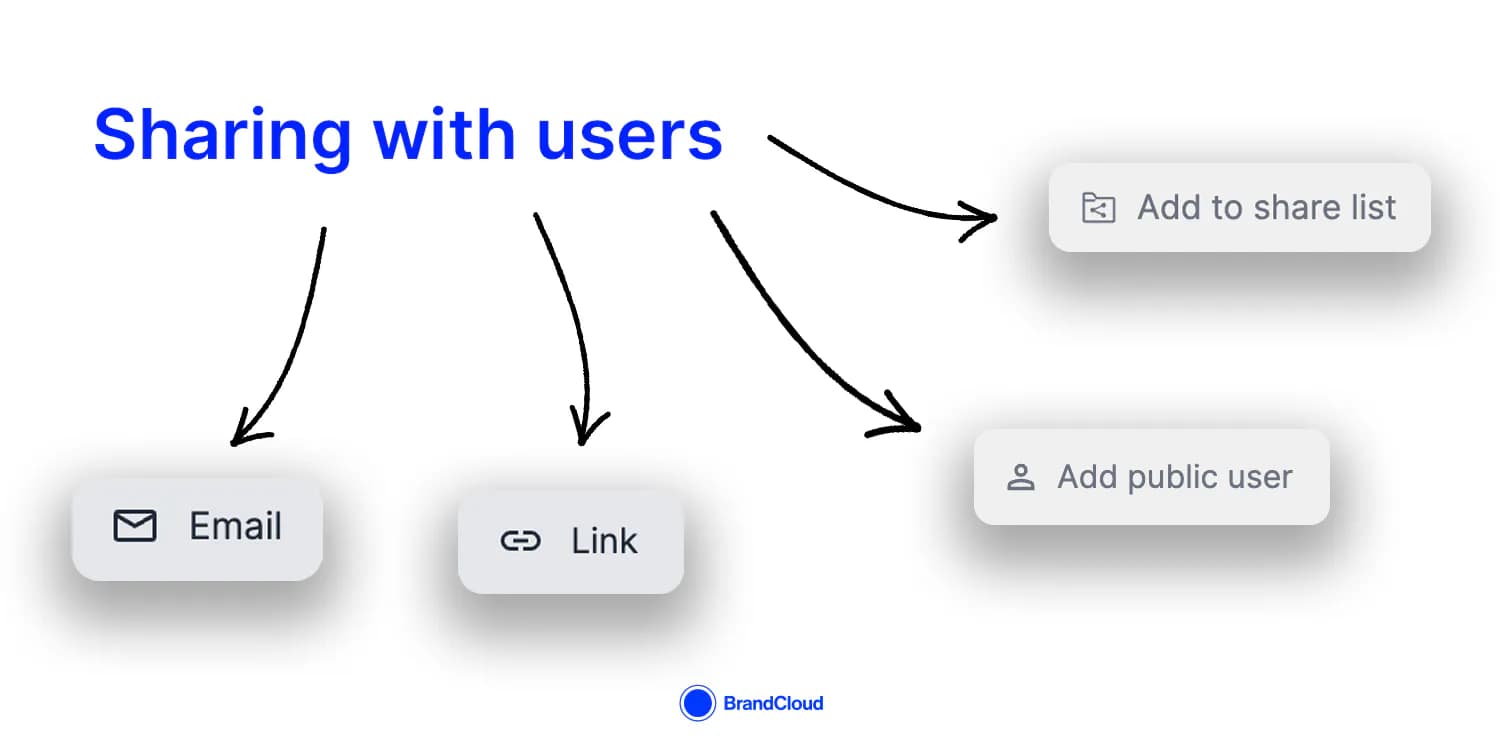 Users do not need to have a BrandCloud account to access the necessary files/folders. The platform provides three sharing methods.