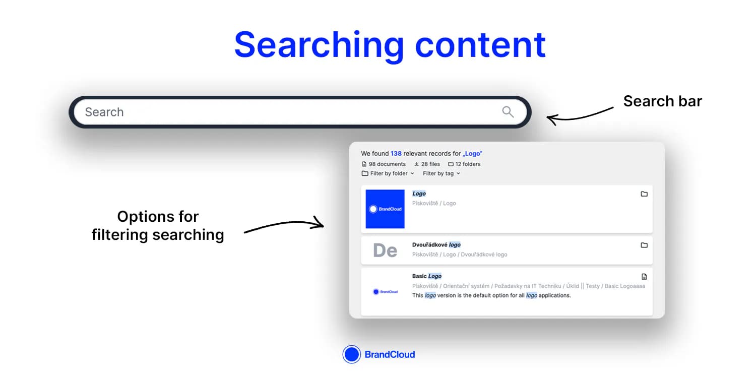 Vyhledávání je využitelné hlavně ve chvíli, kdy buď spěcháte, nebo máte velmi obsáhlý BrandCloud.