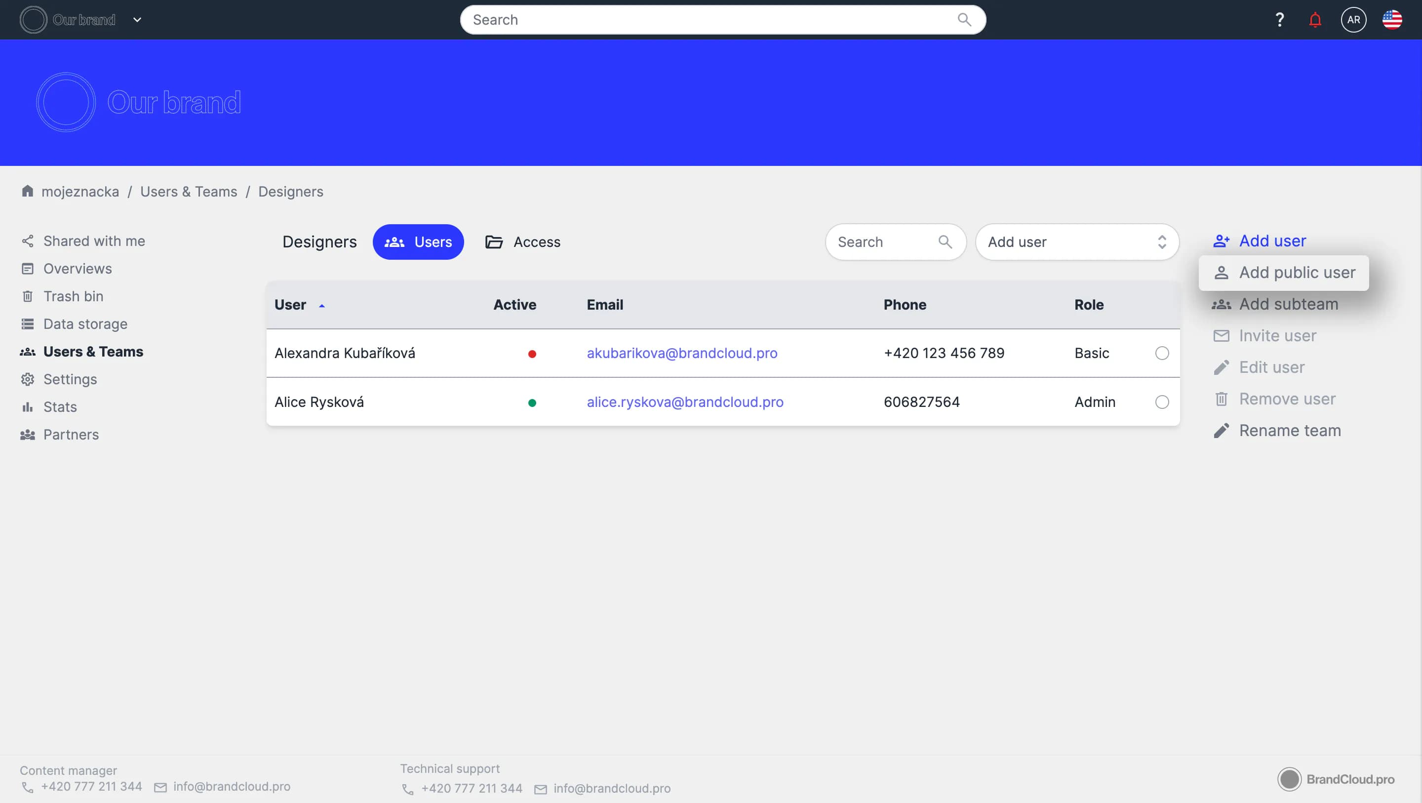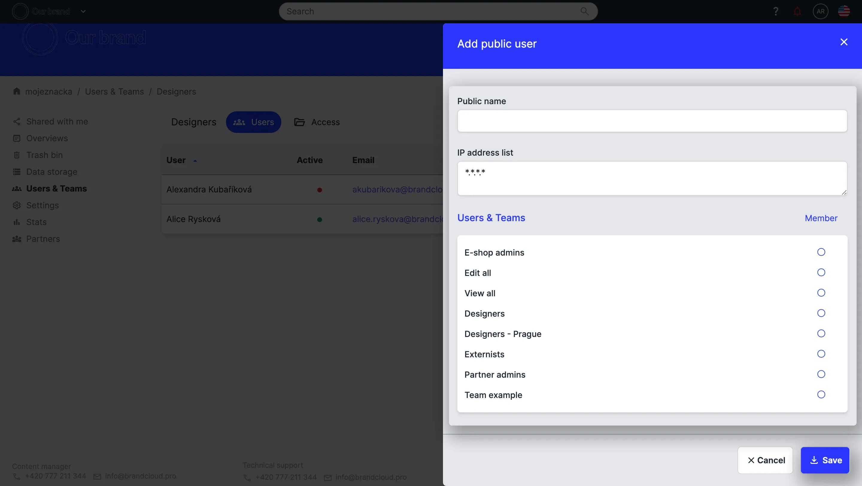 Public access can be used in different ways, and you can always configure it to your needs so that you don't have to do a lot of sharing. A given user just enters the URL of your BrandCloud and they will immediately have access to the content they need.