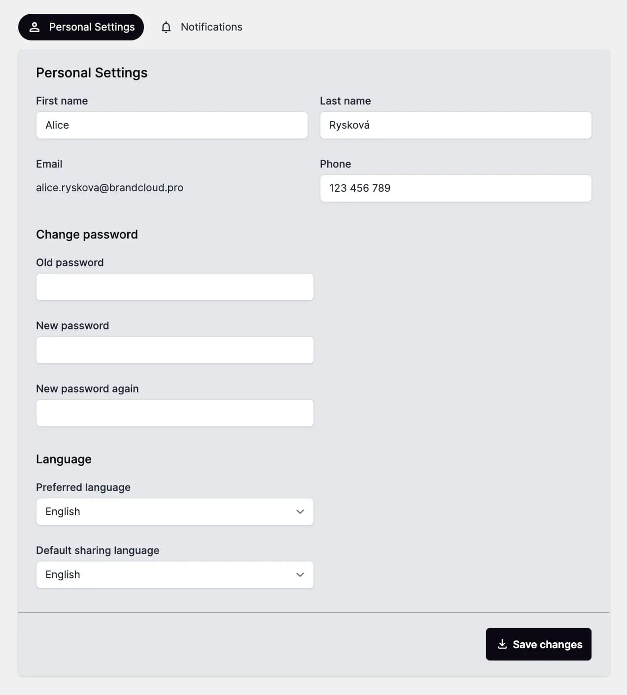 Each user can basically customise their user profile. You can do this by clicking the profile icon with your initials in the top right corner of the platform.